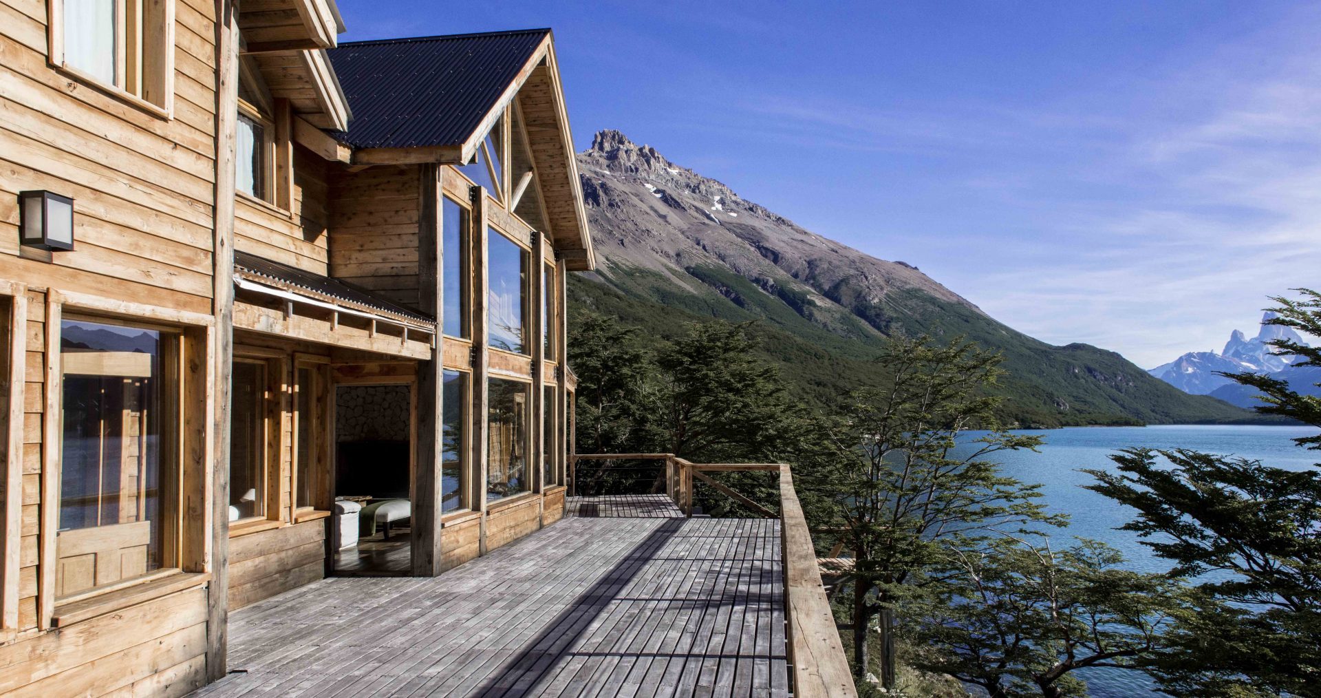 Aguas Arriba Lodge sits near the Lago del Desierto in Argentine Patagonia, 20 miles from El Chalten. Its six rooms provide majestic views of the lake, the north face of Mount Fitzroy, Mount Torre, and the Vespignani Glacier. The lodge is part of the Estancia Rio de las Vueltas, a property with 700 hectares of mountain and 900 meters of shore line, covered with centenarian trees from the Nothfagus species. In the dining area, you'll feast upon fresh produce from the garden.