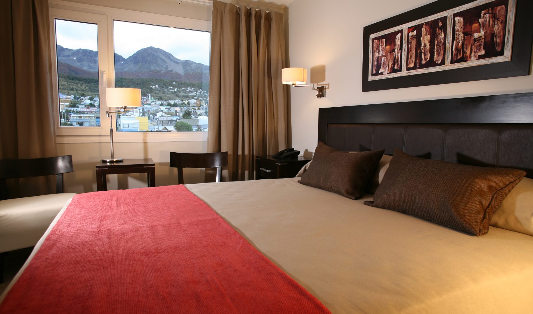 Alto Andino is a sophisticated boutique hotel in Ushuaia, boasting 18 suites and small apartments. The hotel is walking distance from downtown, and the bar and terrace offer 360° views of the city, the Beagle Channel and the Andes mountains.