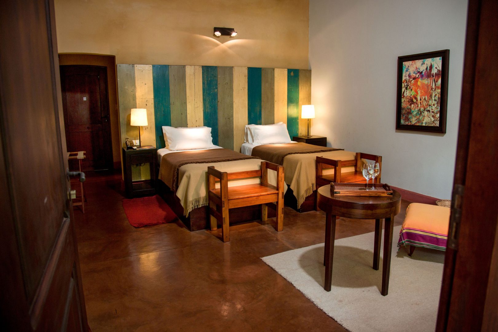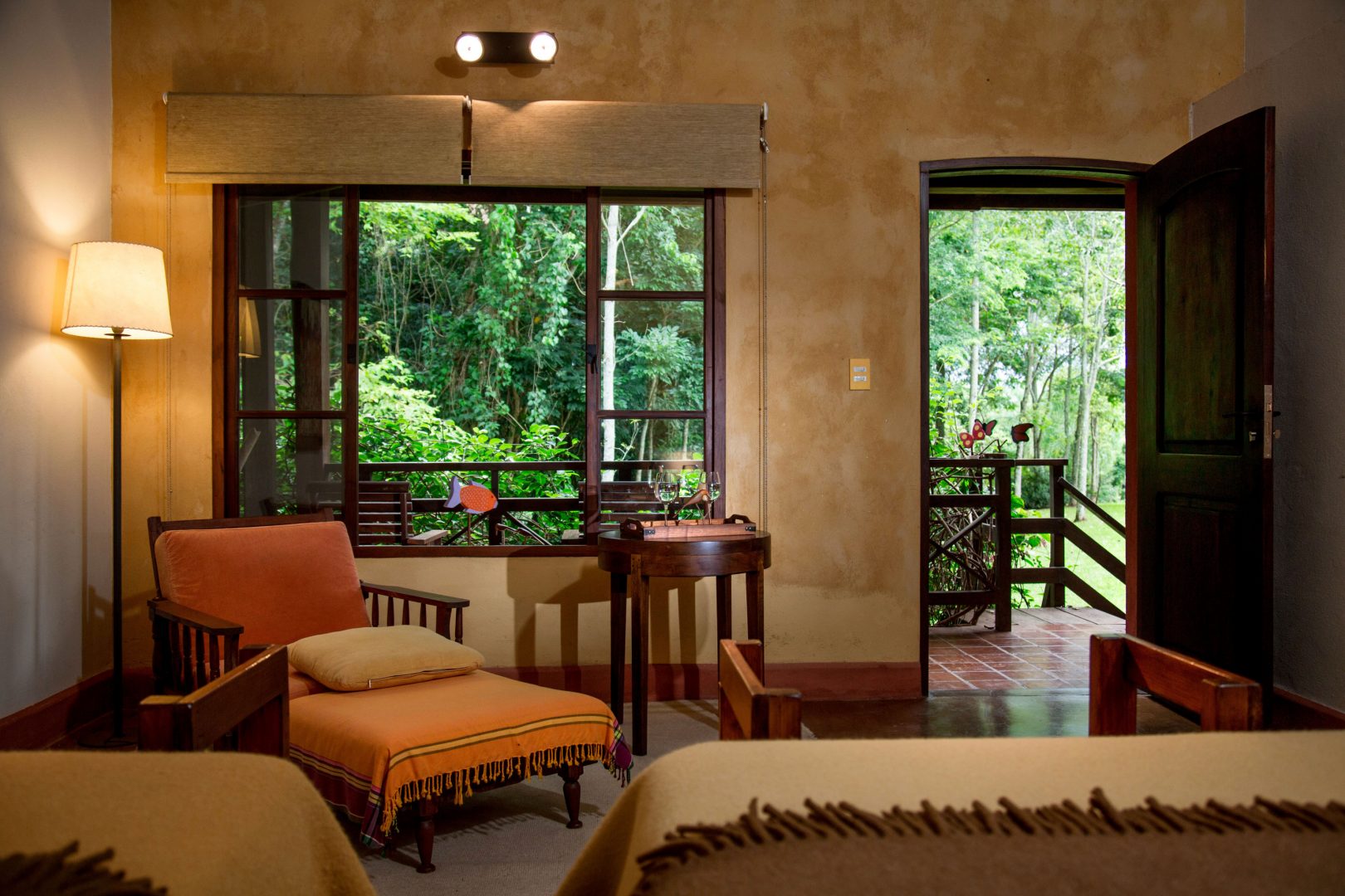 Built in a restored family mansion on the shores of the Paraná River, the Posada Puerto Bemberg has 13 rooms and 1 suite, each featuring a private terrace and large windows overlooking the jungle. The posada has a living room with a grand piano, where guests can gather to hear music or to relax and enjoy the offerings of the library, which features over 2,500 books. Outdoor spaces include an observation tower, a swimming pool, and a wooden runway through the treetops that leads to a sheltered platform with views of the river and jungle. The restaurant features local cuisine and is supplied by the on-site organic garden, fish ponds, and wine cave. The posada also offers trails for bird watching, a native plant nursery, and access to natural pools. Excursions include riverboat rides, bicycling trips, jungle treks, and nature walks.