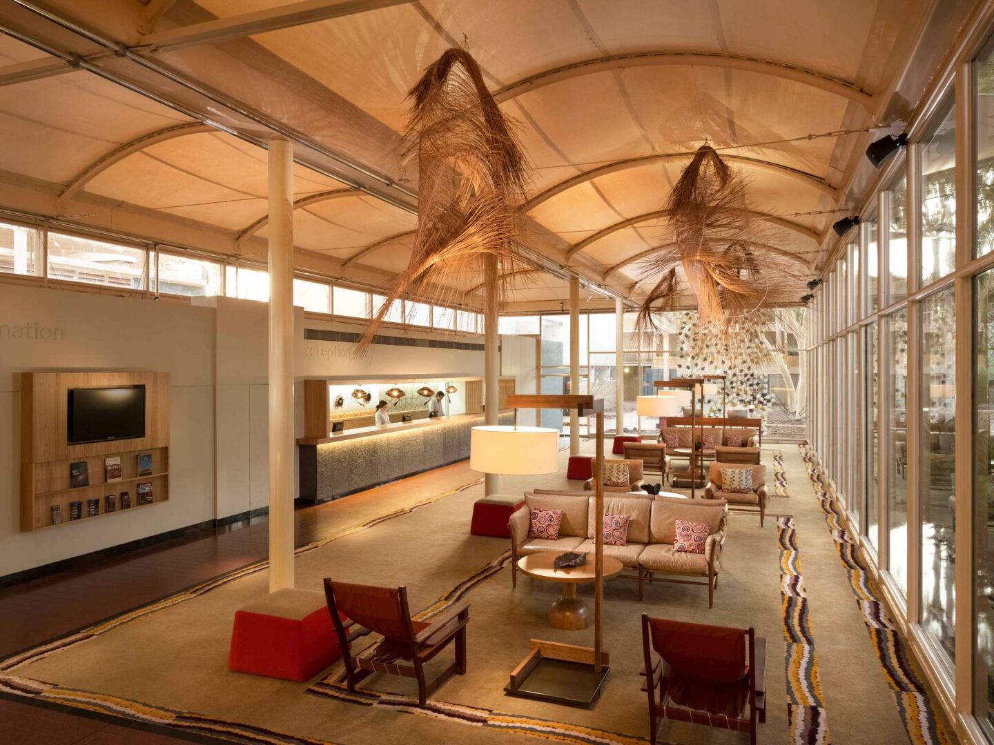 Sails in the Desert is a premium hotel located at Ayers Rock Resort near Uluru, blending contemporary comfort with Aboriginal-inspired design. The hotel offers spacious rooms and suites with modern amenities and Indigenous art accents. Guests can enjoy a swimming pool, spa services, restaurant and bar, and lounge spaces. Its location provides a stylish and convenient base for exploring the landscapes and cultural heritage of Uluru-Kata Tjuta National Park.