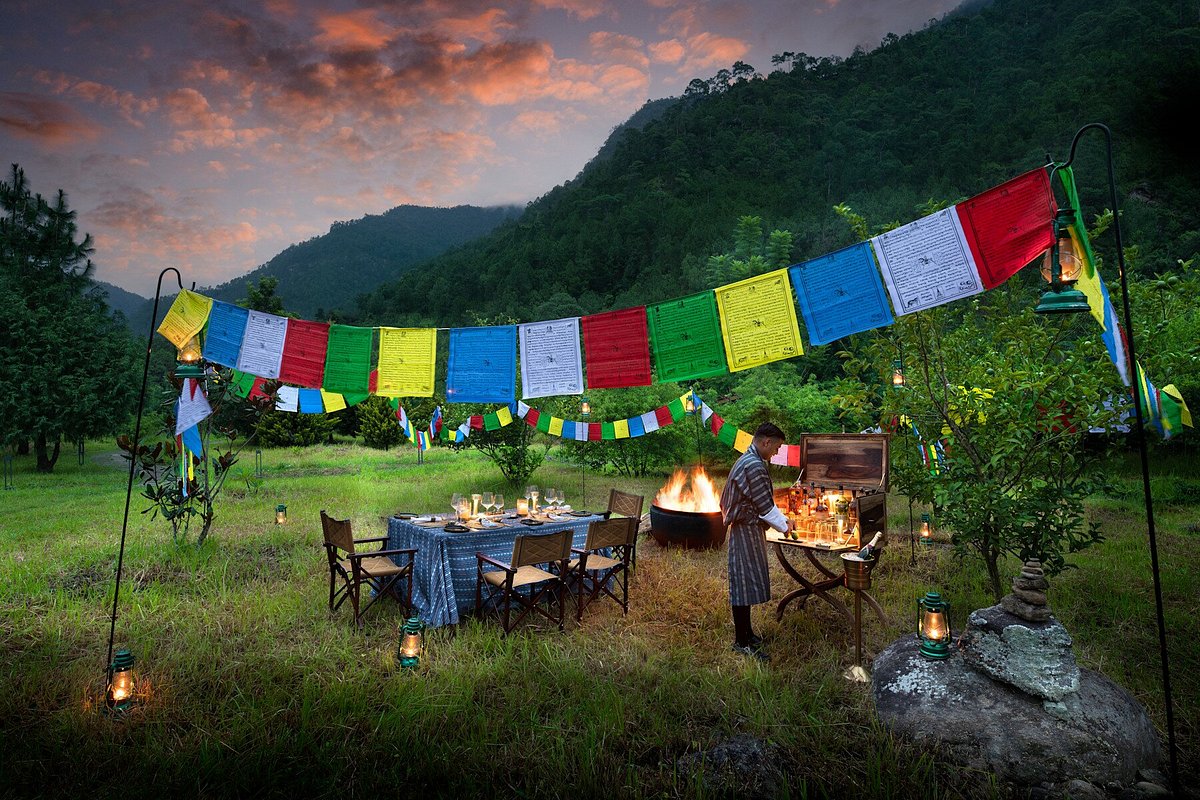 &Beyond Punakha River Lodge is a spectacular lodge, tucked deep in the lush green Punakha Valley and draped on the banks of the Mo Chu River. Each of its luxurious suites boast breathtaking views of the surrounding cascading rice paddies and dense forests, reflecting traditional Bhutanese architecture in perfect harmony with nature. Guests can indulge in yoga and meditation classes or a traditional Bhutanese hot stone bath, swim in the two heated all-weather swimming pools, take an onsite cooking class, or lounge with a cocktail in the chic outdoor spaces overlooking the surrounding landscapes. This lodge proudly boasts all of the luxuries and amenities that come with the &Beyond reputation.