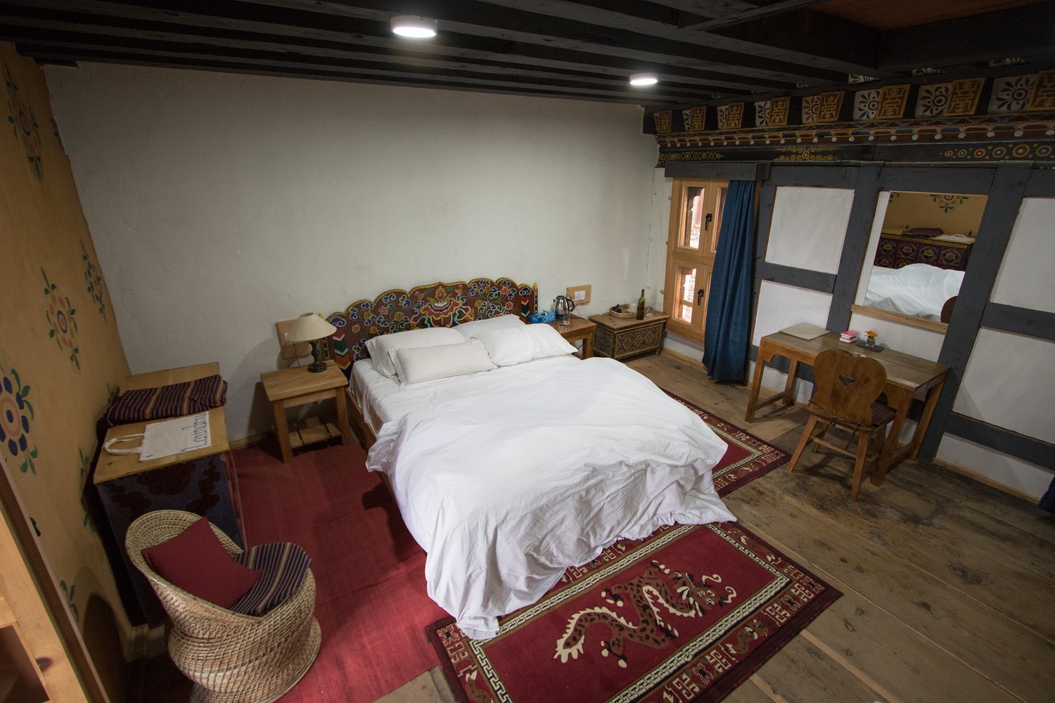 Set within a 16th-century manor, Ogyen Choling Heritage House is a family-run property offering a rare opportunity to stay inside one of Bhutan’s historic noble homes. The guesthouse has a small number of simple, rustic, yet comfortable rooms, featuring traditional woodwork, stone walls, and views over the Tang Valley. Meals are home-cooked and served communally, highlighting local ingredients and Bhutanese recipes. A museum housed in the main complex showcases artifacts and exhibits on Bhutanese history and rural life, adding to the sense of immersion in the country’s heritage.