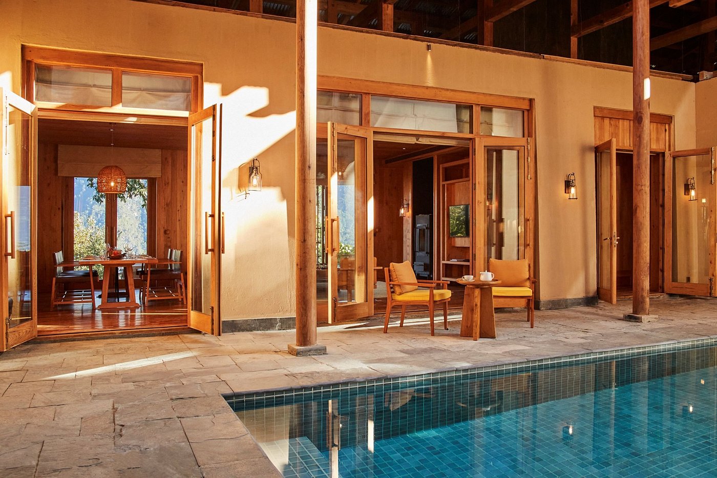 Situated within apple orchards and pine forests, yet still within reach of the capital’s attractions, Six Senses Thimphu is perched on an auspicious hillside overlooking the shimmering lights of Thimphu. Six Senses Thimphu offers 25 spacious villas and suites, starting from 721 square feet for the Lodge Suites and up to 3,358 square feet for the Three-Bedroom Villa. Yoga and meditation classes are on offer, as well as massage therapy, heated pools, a gym, hot stone baths, and a sauna. The culinary and mixology teams draw inspiration from local herbs and plants, crafting nutritious and tasty menus and cocktails at the onsite restaurant and bar.