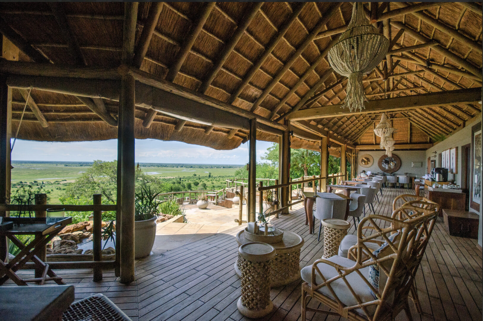 Located in the Chobe Forest Reserve in Western Botswana, the private Ngoma Safari Lodge is located on the edge of a plateau, offering endless views over the seasonal Chobe flood plain. There are six Double Luxury Suites and two Triple Luxury Suites, each a perfect combination of natural splendor and comfort, and all eight suites offer breathtaking views over the Chobe flood plain. Each suite has a private deck with an outdoor shower and a plunge pool. The main lodge area has a restaurant, bar, lounge, sundeck, and a large volcanic rock-finished swimming pool.