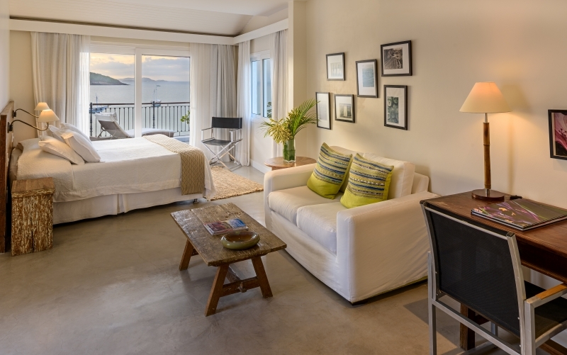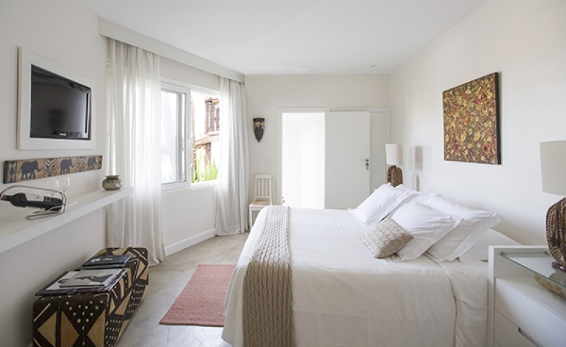 Casas Brancas sits five minutes from the center of Buzios, a cove-filled peninsula with 26 different beaches. Overlooking the bay, its 32 terraced rooms, framed with billowy white drapes and distinctive furnishings, offer a chic Mediterranean ambiance. Its alfresco restaurant offers lovely views of the water.