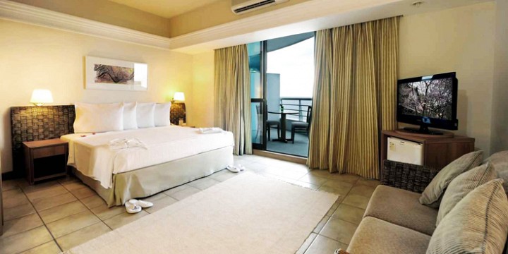 Resting majestically along the shores of the Rio Negro, the ultra-modern Park Suites Manaus provides spacious rooms with king-size beds, high-speed Internet, efficient air-conditioning and phone system, 21st-century plumbing, electronic safes, and verandas that offer awe-inspiring views of the Rio Negro. The hotel offers a free shuttle service to the airport and downtown. Guests enjoy its large outdoor pool and sun deck overlooking the Rio Negro and its state-of-the-art fitness center. Alpaba, the hotel restaurant, serves a diversity of dishes that highlight the diversity of Brazil's culinary culture.