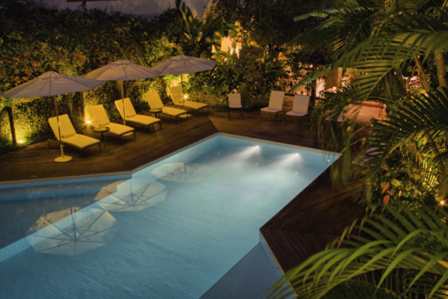 Pousada do Ouro is a boutique hotel in the quaint colonial town of Paraty, Rio de Janeiro. The whitewashed 18th-century building houses stylish rooms, with bold colors contrasting against ivory walls and white linens. Woven rugs, dark woods and artwork depicting the local fauna and flora embellish the 27 individually-decorated room. During the day, you can hike the fertile landscapes or spend the day at a nearby beach. Spa treatments, or cocktails by the pool await your return. At Punto Divino, the hotel restaurant, you'll enjoy Italian and other international specialties.
