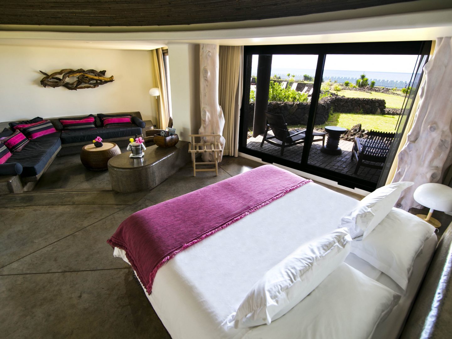 Hangaroa Eco Village & Spa is located on the main coastal road of the town of Hanga Roa. It features great views of the ocean but is also just a short walk to the center of town, allowing guests to experience natural beauty as well as the local community. Built with natural materials such as cypress trunks, clay and volcanic rock, and inspired by the traditional cave-shaped dwellings of Orongo Village, the hotel is characterized by curved spaces and interesting architecture, and features an extensive spa area and several gourmet restaurants.