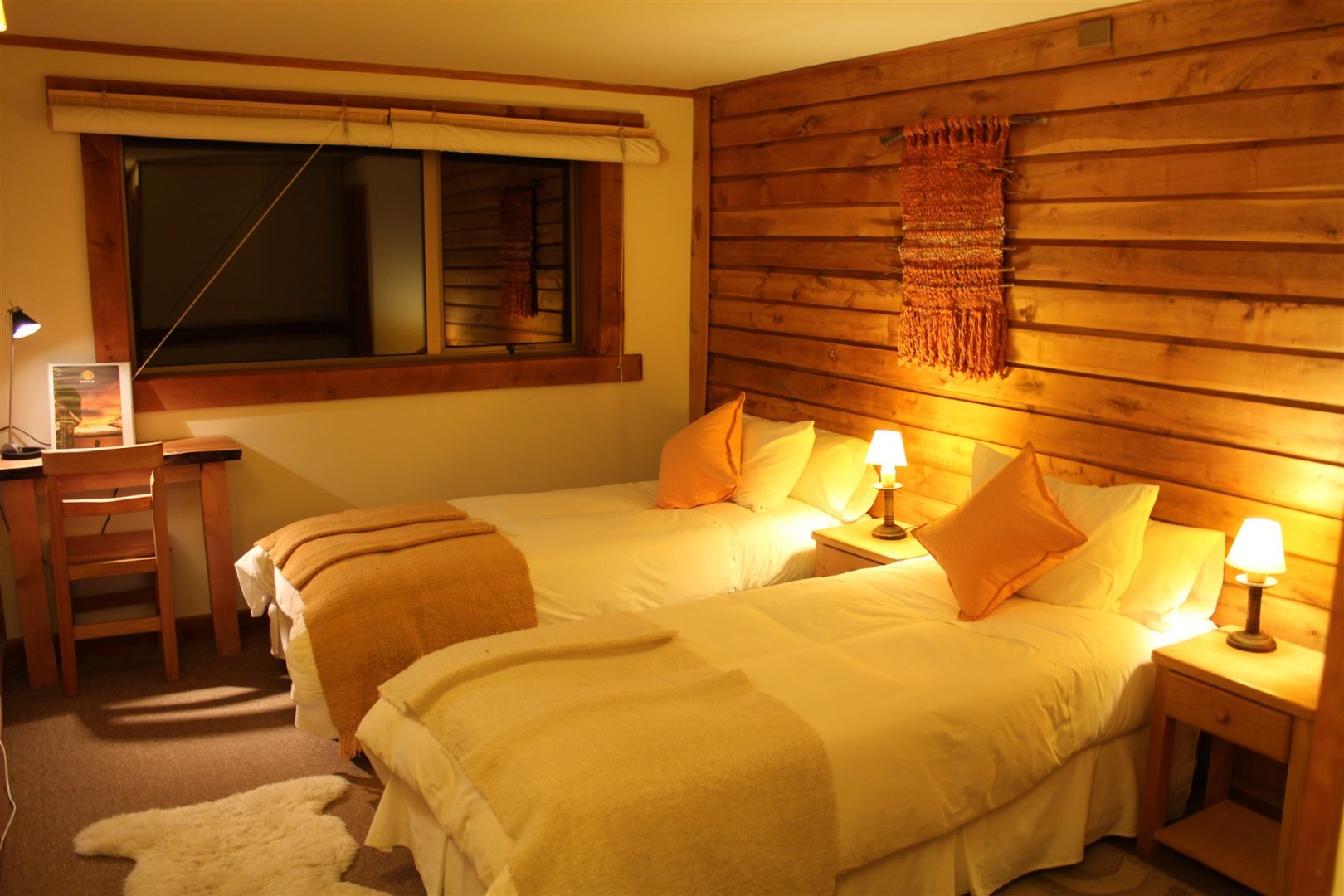 The Weskar Patagonian Lodge sits on top of a hill, just 10 minutes away from the center of Puerto Natales in Chilean Patagonia. Glaciers, mountain ranges, sea channels, and the Última Esperanza Sound are all visible from the hotel windows. Its 28 rooms are large, comfortable and tastefully decorated, and its on-site restaurant serves high quality Patagonian dishes. A refined but unpretentious lodge, not as modern and minimalist as some of the other boutique hotel options in this area, and that is part of its local charm.