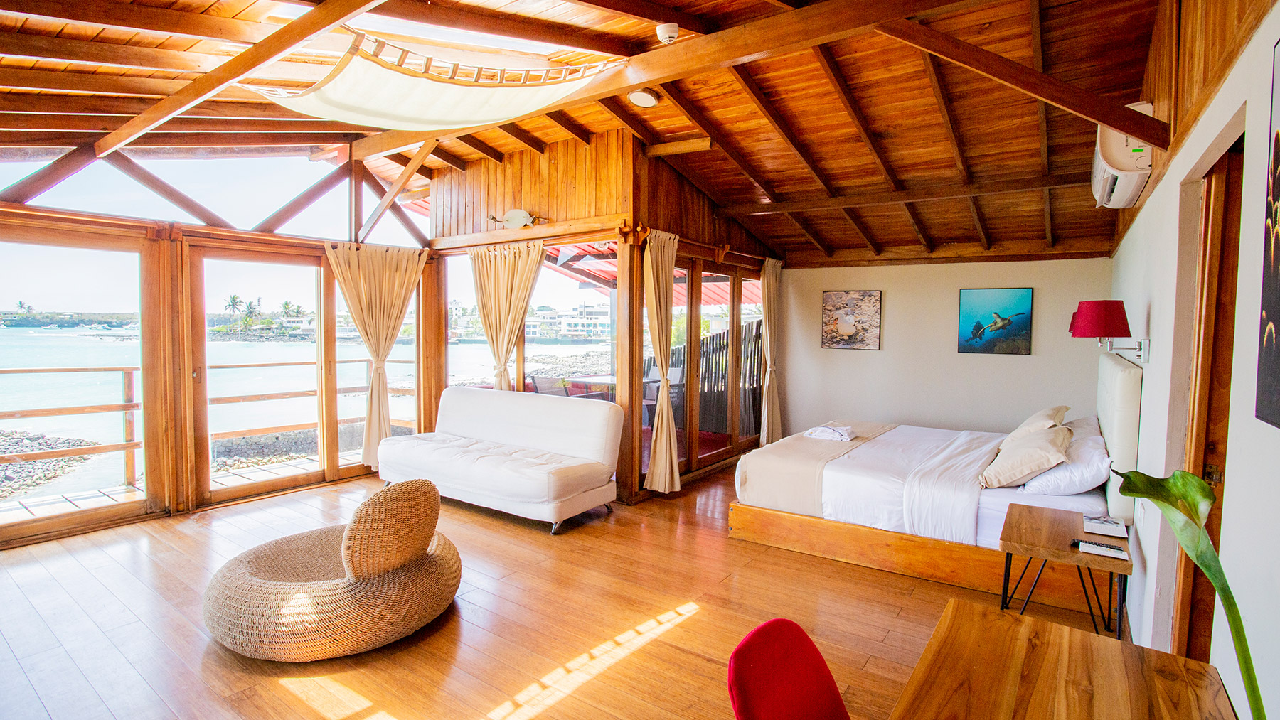 Located on the island of Santa Cruz, Blu Galapagos sits beside Puerto Ayora, the island's main city. The bay of Puerto Ayora is in full view, and guests can explore the complex ecosystem of mangrove forests right outside the front door. Blu Galapagos offers 5 suites, 6 superior rooms, and 12 standard rooms with views of the water or into the diverse mangrove forest. The onsite restaurant serves local dishes.