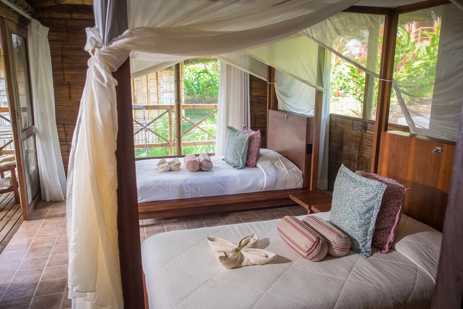 Located in the Ecuadorian Amazon Jungle, La Selva Ecolodge enjoys a remote location on the shore of Garzacocha Lake, a wildlife-filled natural lagoon. Each of the 12 private bungalows offers private bathrooms and electricity, and are equipped with fans, mosquito nets, and hammocks. The cabins are connected by walkways to each other and to the public common areas, which include a spacious dining room with a rooftop lookout point and an open-air bar and lounge with a wrap-around view of the lake. La Selva offers a variety of activities, including birdwatching, hiking, night walks, fishing and canoeing.