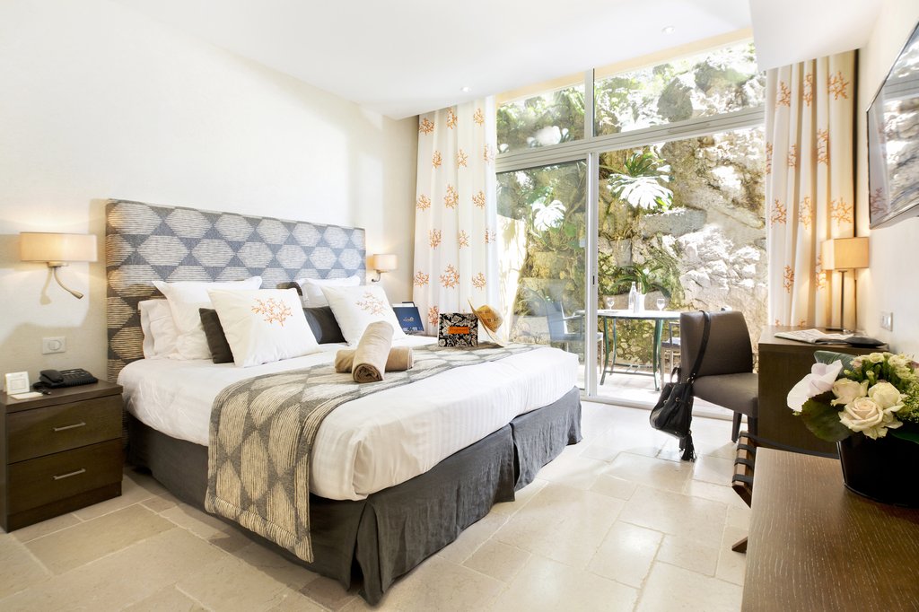 Situated on Castle Hill overlooking the Baie des Anges, La Perouse has one of the best locations in Nice. The views are spectacular and the hotel is a brief walk from the Old Town. Many of the 56 rooms have ocean views, and some feature a terrace on which to enjoy the sea breeze. The hotel restaurant is located in a Mediterranean garden under a grove of lemon trees.