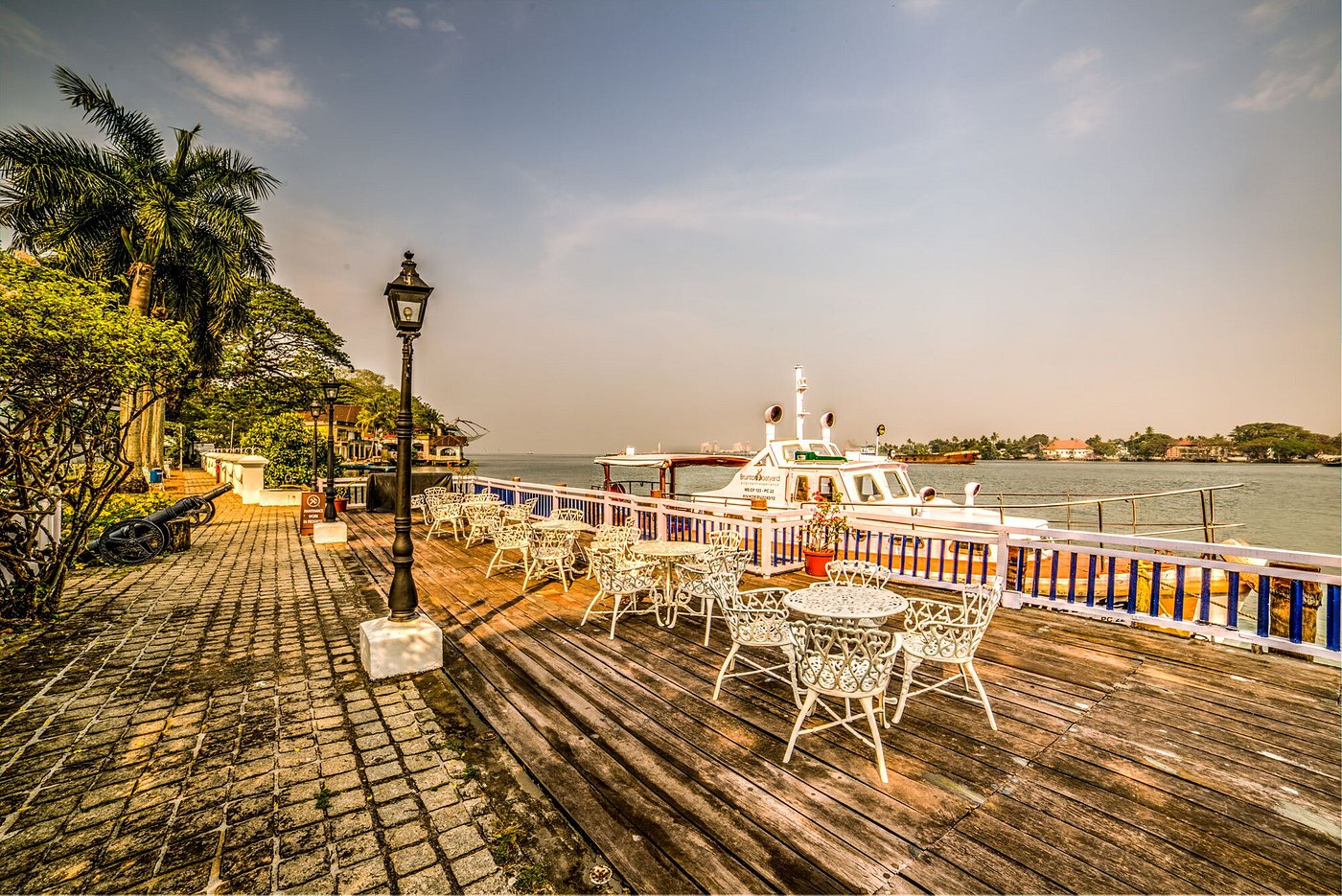 Brunton Boatyard at Fort Kochi is inspired by colonial history. A former shipyard in British times, this historical plot of land that once housed a famous boatyard now has another landmark, the Brunton Boatyard. Brunton Boatyard is a five star hotel whose 22 rooms and interiors reflect an eclectic but tasteful blend of English, Portuguese and Dutch influences, as seen in its high ceilings, hanging fans and a plethora of artifacts and curios from a great mercantile age. Most rooms have a sea view. Airy lounges, manicured lawns, a spacious pool, unmatched harbor views, and varied cuisines are all on offer.