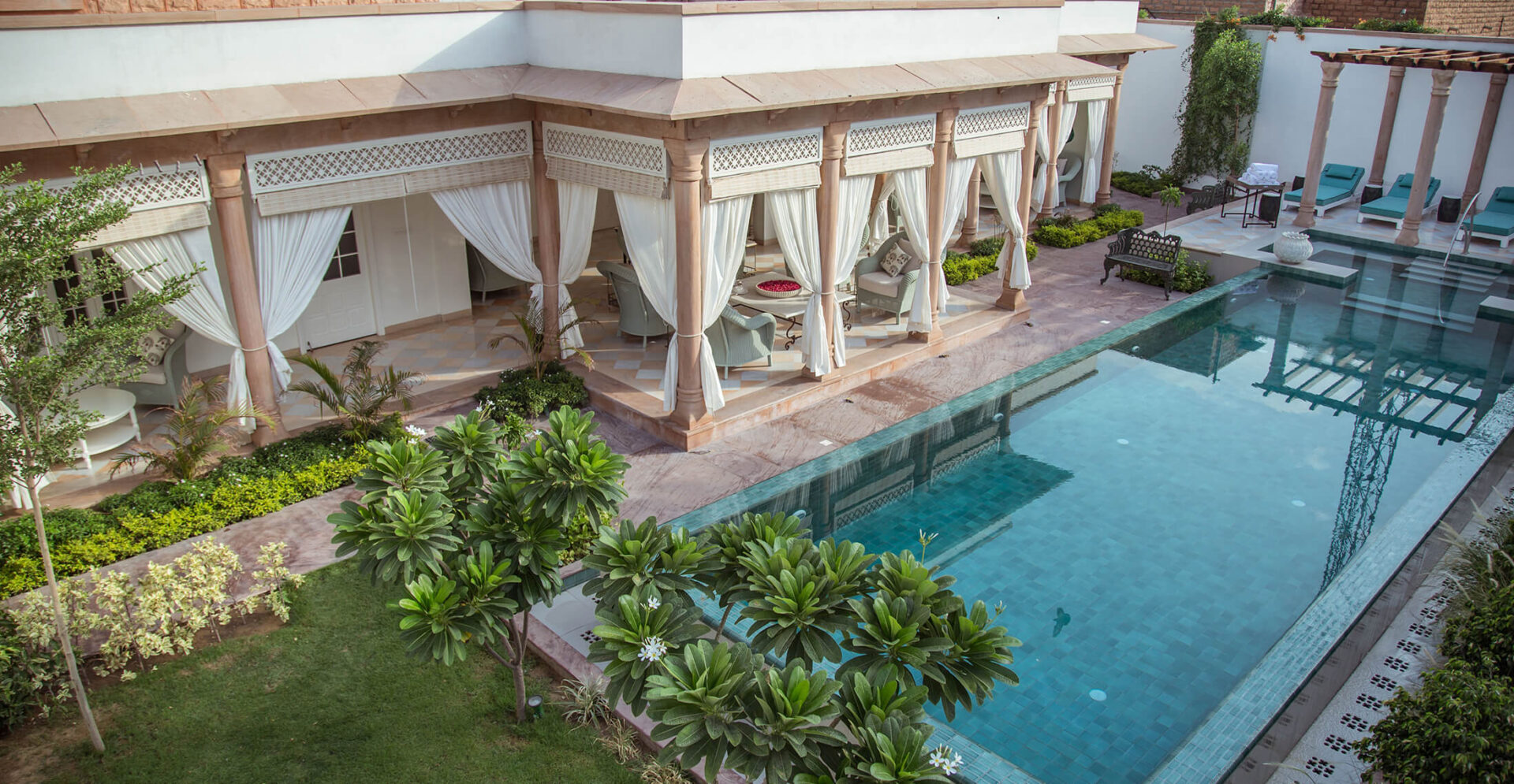 Established in 1969 by the Late Thakur Manvendra Singh and Late Thakurani Jayendra Kumari, The Rohet House is a family home in Jodhpur, a haven amidst the bustling modernity of Rajasthan’s second largest city. Spread across 14,000 sq. feet, this private property has been lovingly developed into a Luxury Residence featuring six suites and two rooms, a spacious swimming pool, a beautifully appointed plush dining room, inviting lounges and verandas, and a lush garden.