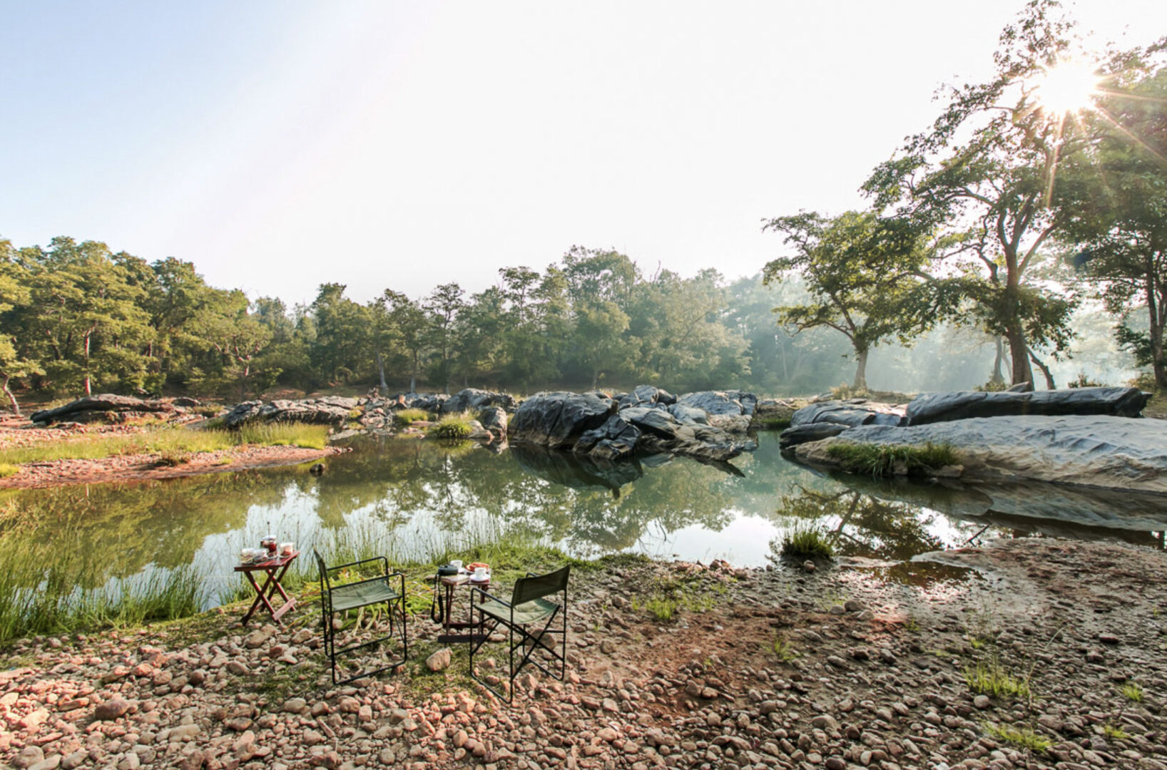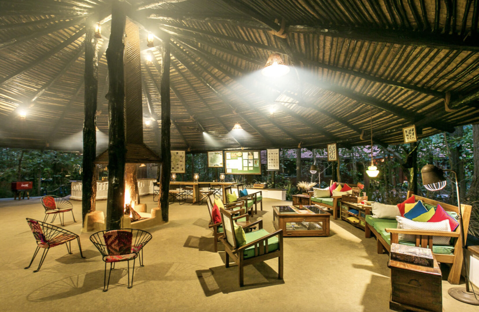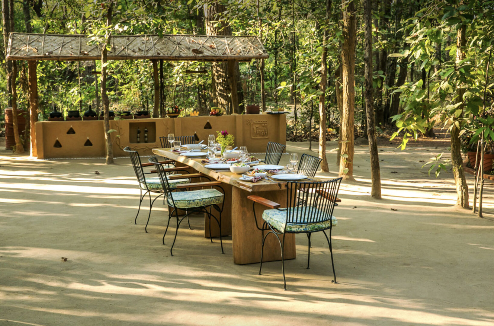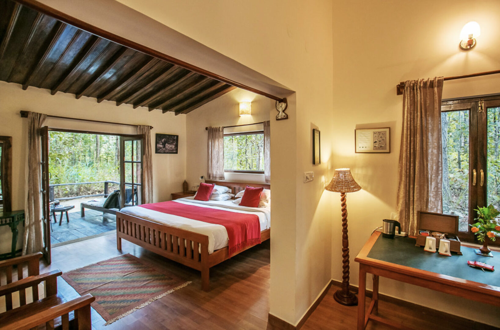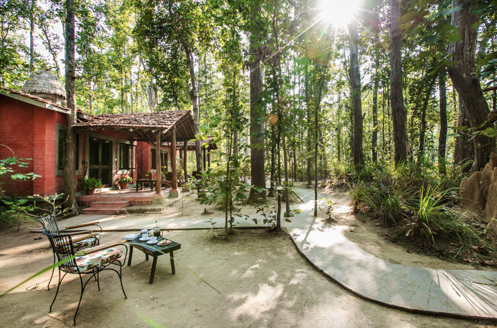 Set amidst 11 acres of thick Sal forest and situated close to Mukki gate of Kanha National Park, Kanha Jungle Lodge was built with minimum interference to the natural environment of its setting and managed on eco-friendly principles. 18 spacious double–bed rooms and two independent deluxe cottages are available, surrounded by tall trees. Communal spaces allow for areas to gather to read books, sit by campfires, and dine in beautiful outdoor spaces.