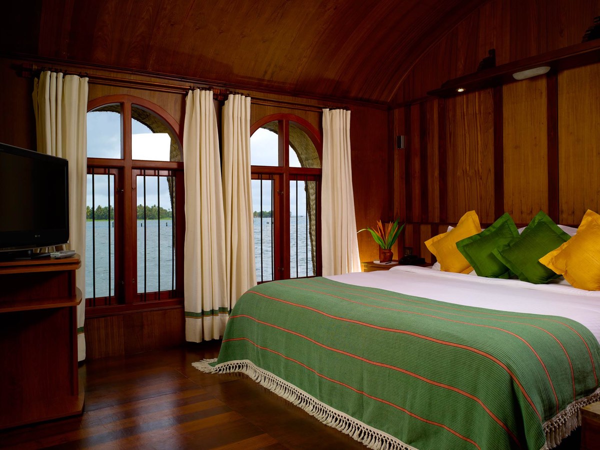 Float in this charming accommodation on the serene waters of the Lake Vembanad, styled in Kerala's traditional houseboats. This houseboat is equipped with modern amenities and luxuries, including personal crew and a chef, air-conditioned bedrooms, use of an on-land pool and fitness center, tea and coffee facilities, and high-end toiletries.