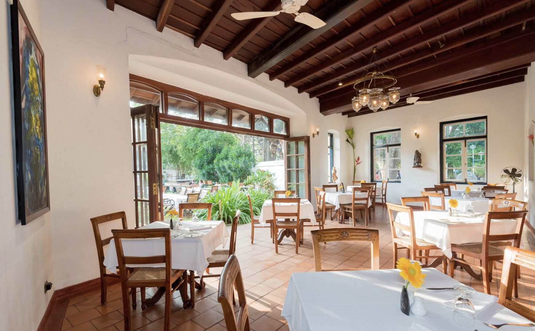 At the heart of ancient Fort Cochin, Kerala, is the 'Old Harbour Hotel'. A 300 year-old building that has long been a heritage monument of this town, it's now reopened as a boutique hotel. Built in Dutch-style of architecture with hints of Portuguese influences, it was the first hotel of old Cochin. Today, 13 spacious rooms, each of them named after the various old streets of Fort Cochin, are plush with high ceilings and either look into a courtyard with a fountain or over the ancient Chinese Fishing nets. The garden cottages have open-to-the-sky showers, a veranda and a private pond. There's an on-site restaurant featuring local ingredients and freshly baked bread, as well as a swimming pool, spacious gardens, Ayurvedic spa, and stage for cultural performances.