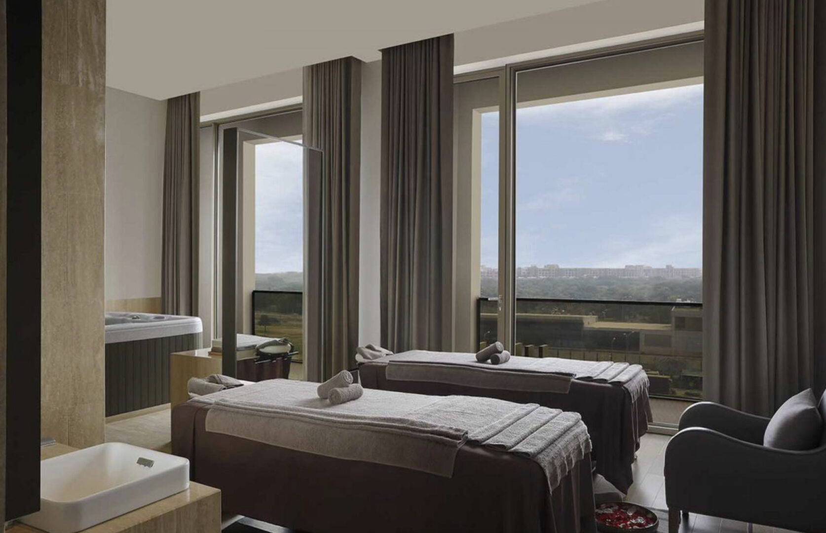 Roseate House New Delhi is a contemporary upscale hotel stationed in the capital’s only hospitality district, Aerocity. Distinguished to be one of the best hotels in Delhi Aerocity, it spreads across 1.6 acres and combines lineage and novelty in its design and services to cater to cosmopolitan guests. This popular 5-star hotel in Delhi Aerocity renders a contrasting respite from the city’s hustle and bustle. Guests can enjoy an on-site coffee shop and patisserie, two restaurants, a spa with grooming services, a theater featuring movies and live performances, a gym, and a rooftop infinity pool.