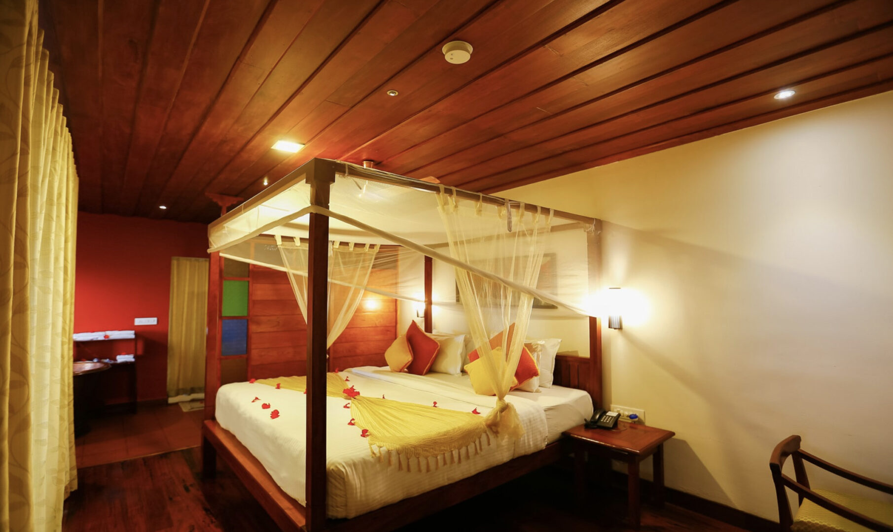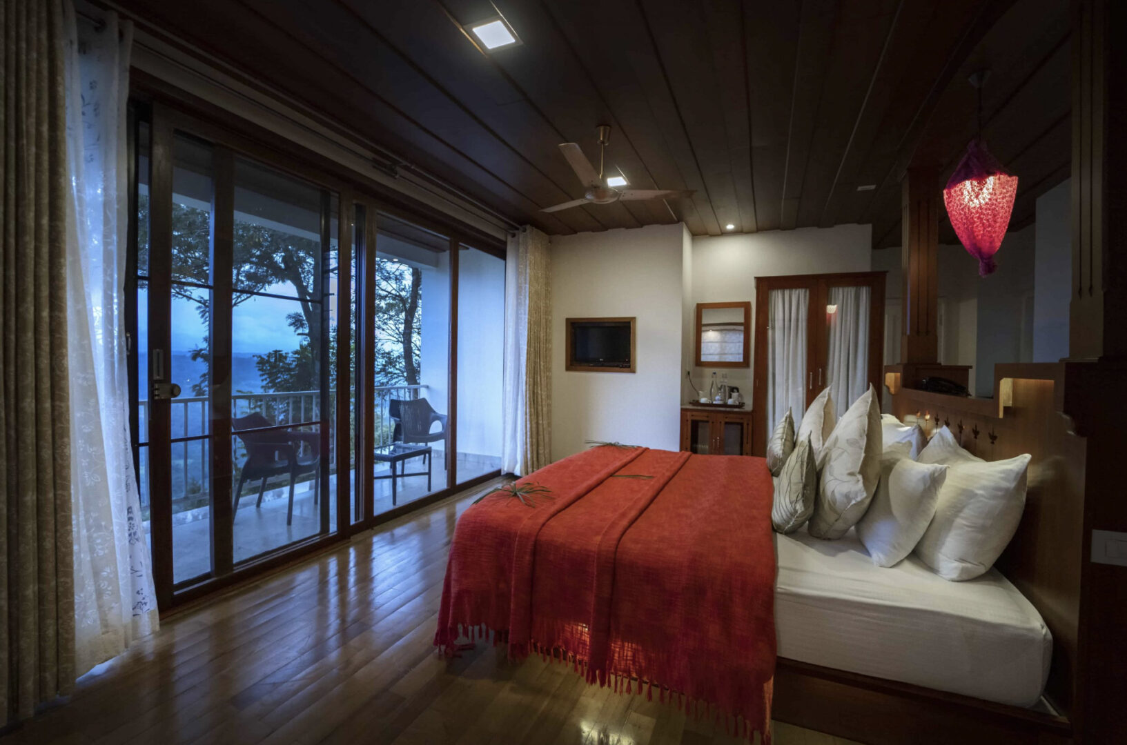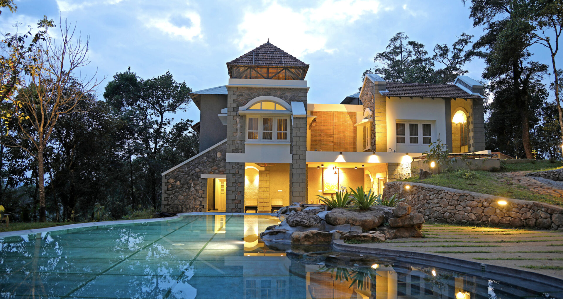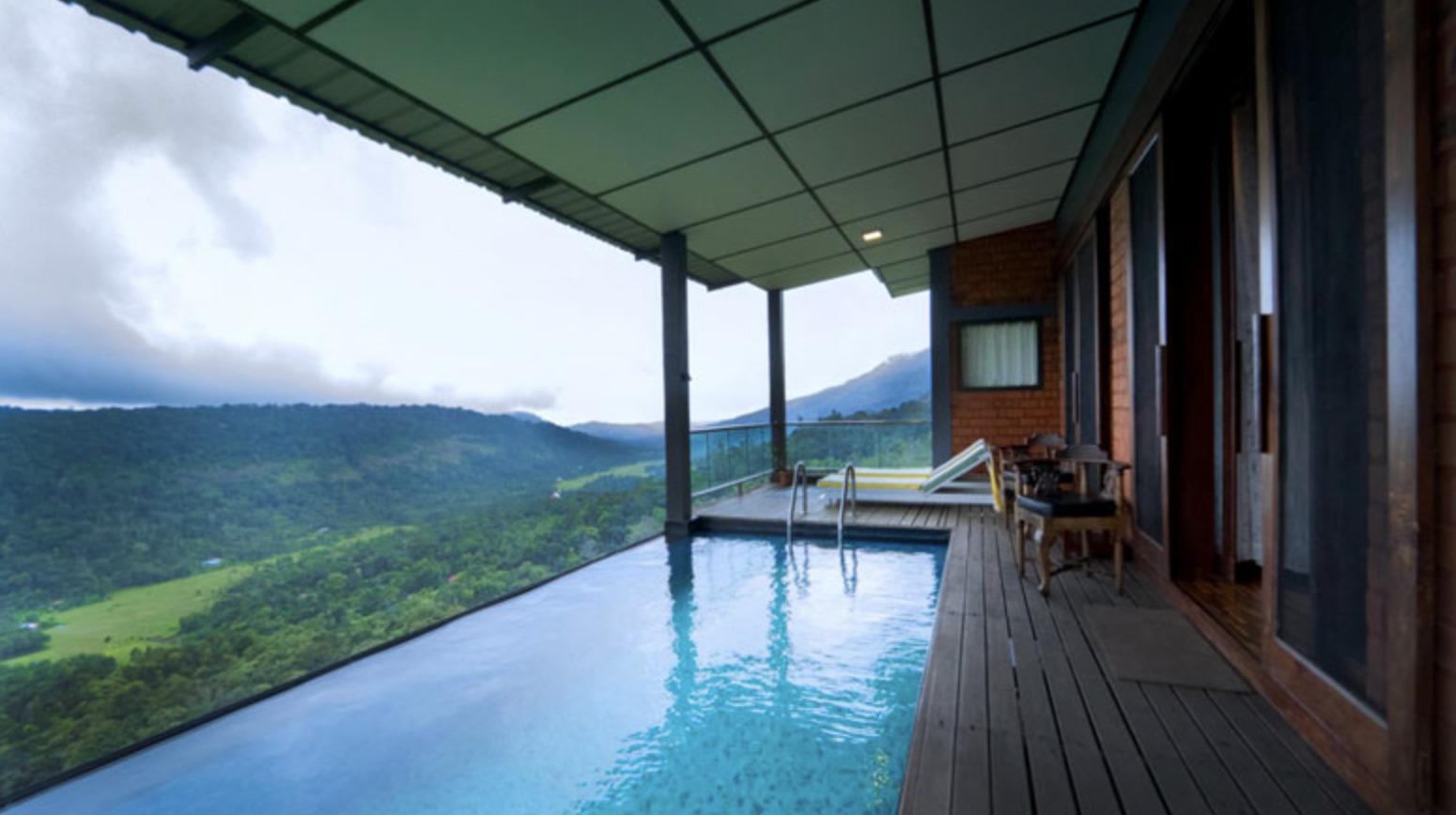 Nestled among the pristine mountain landscape of Munnar, the charming chalets of SpiceTree offer perfect tranquillity with incredible views of the verdant valley below. SpiceTree has a solar heated outdoor swimming pool with organic mountain spring water that is sparkling clean at all times. The rooms, nicely decorated with rich tones and outfitted with comfortable amenities, offer sweeping views. Guests can also enjoy a tea tasting in the bakery and coffee shop, yoga in the yoga shala, delightful Indian cuisine, a library and bar, and a swim in the pool.