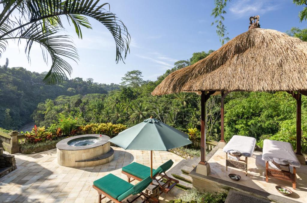 Carved into the lush Ayung River valley, Royal Pita Maha is a family-owned resort created by Ubud’s royal family to showcase Balinese art, architecture, and hospitality. Private villas cascade down the hillside, each with its own pool, spacious living areas, and traditional décor featuring carved wood and stone. The resort’s riverside setting includes natural spring-fed pools, a holistic spa, and restaurants highlighting Balinese and international cuisine.