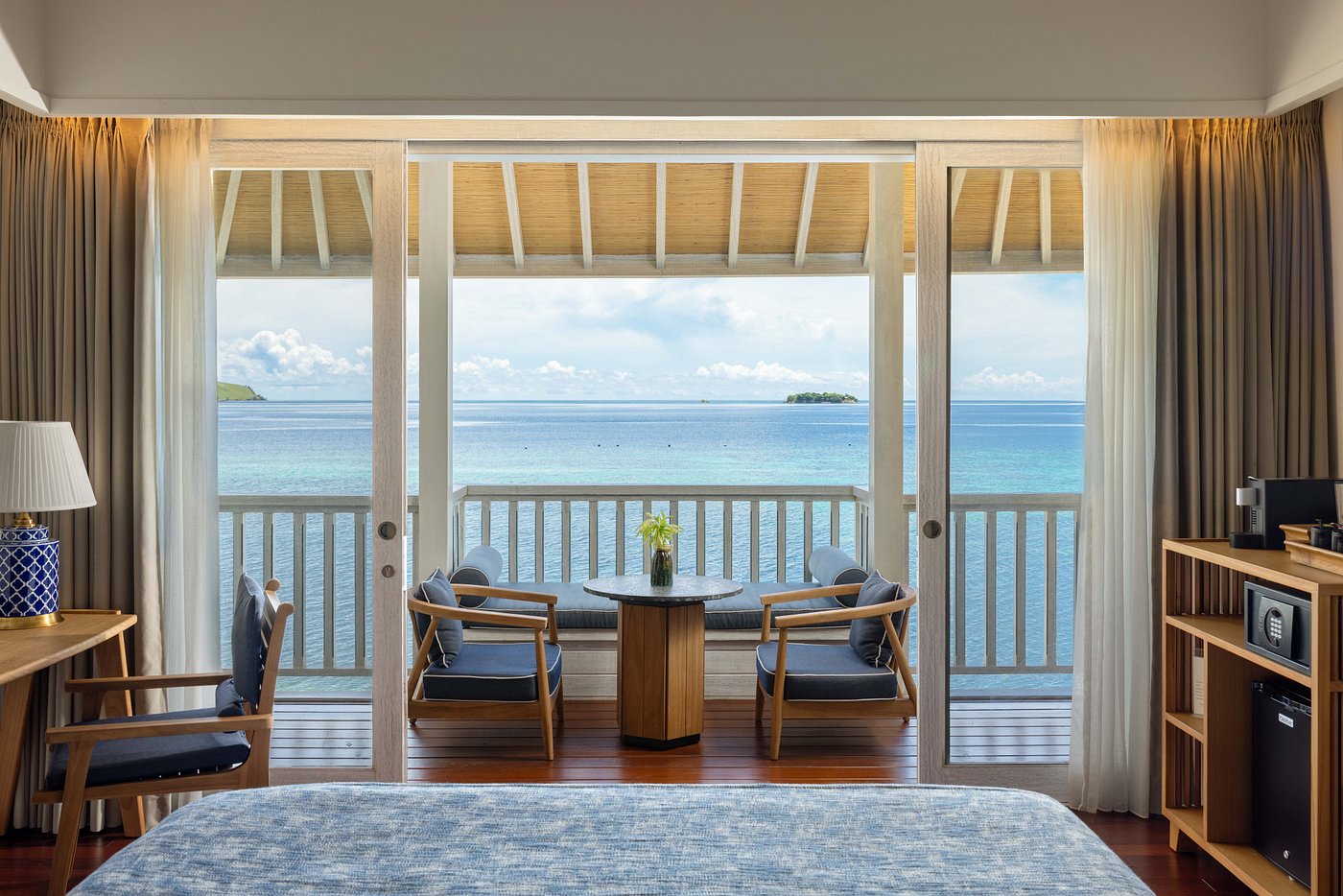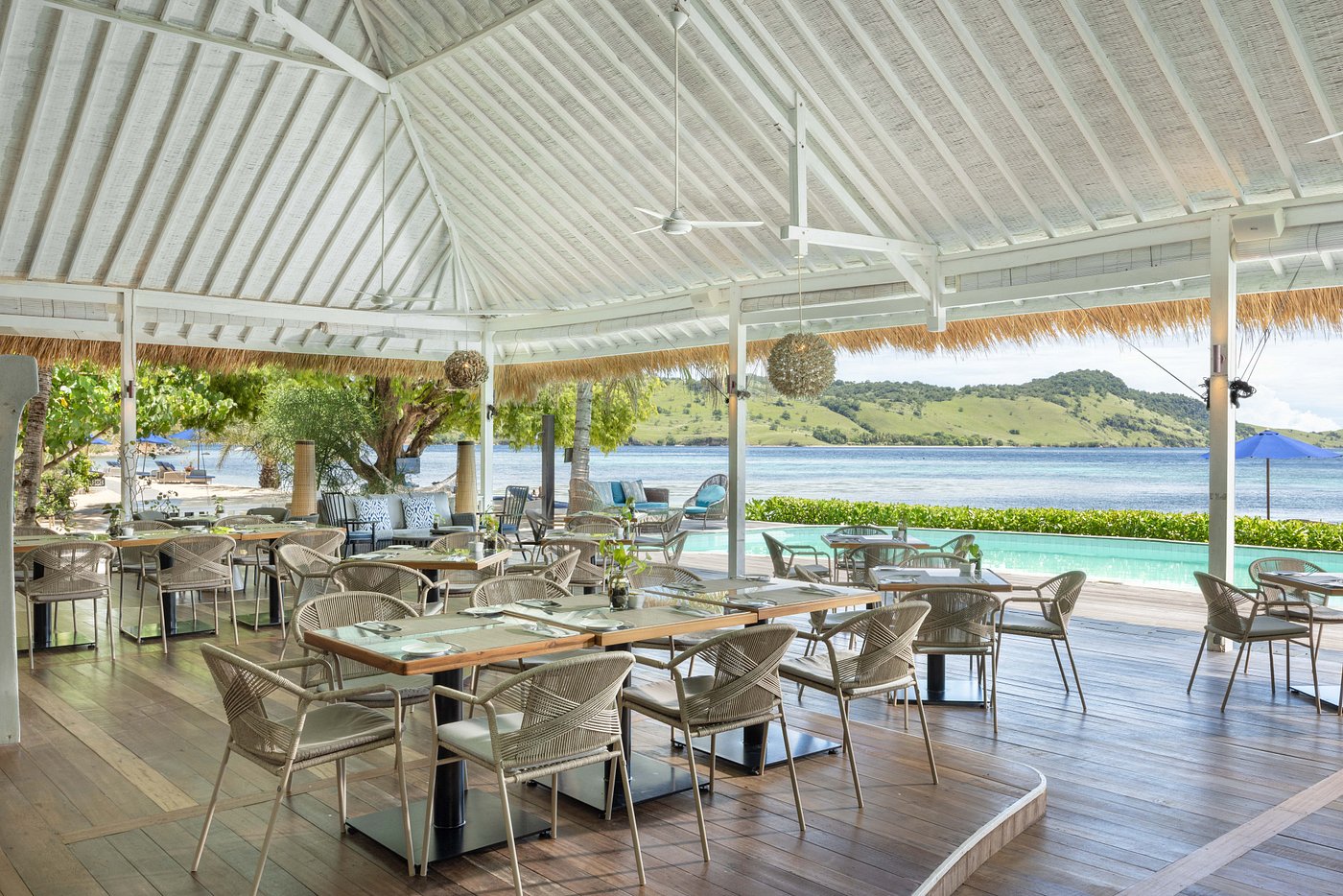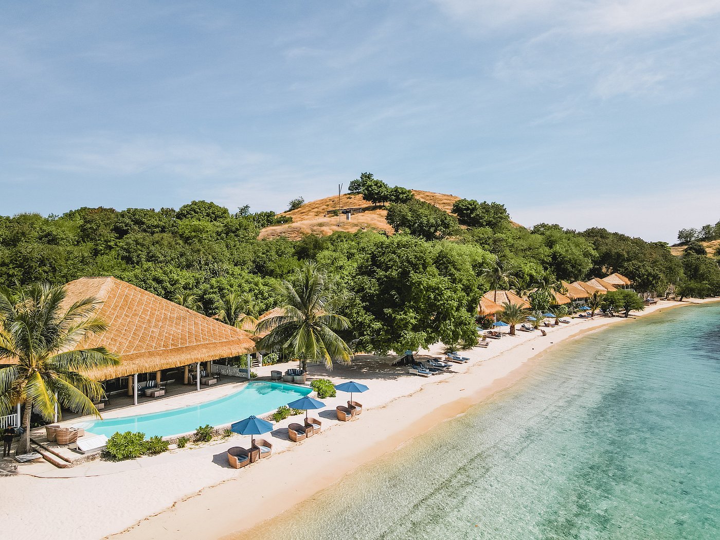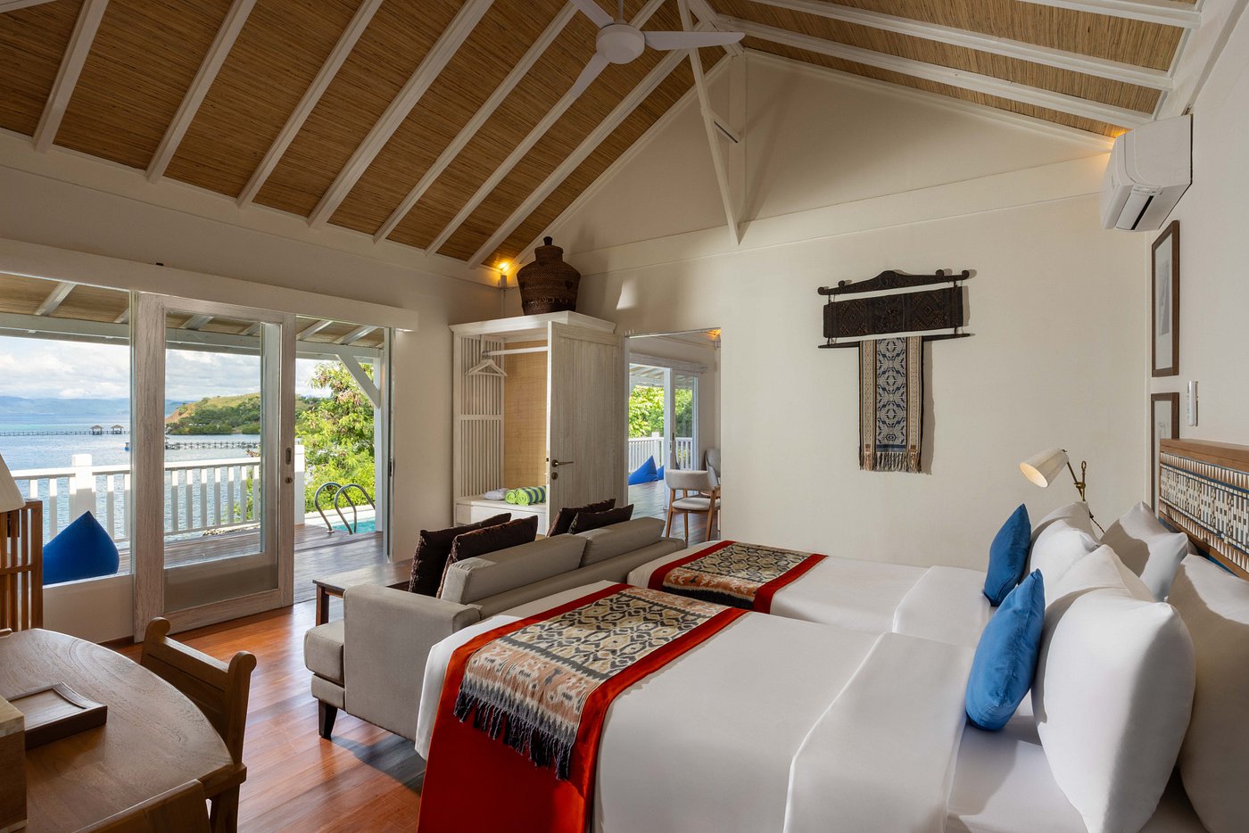 Sudamala Resort, Seraya, is a private island retreat set on Seraya Kecil, just a short boat ride from Labuan Bajo. The resort features beachfront bungalows with thatched roofs, natural wood interiors, and private verandas that open directly onto white-sand beaches and turquoise waters. Facilities include a swimming pool, an open-air restaurant serving Indonesian and international cuisine with a focus on fresh seafood, and a beach bar for sunset drinks.