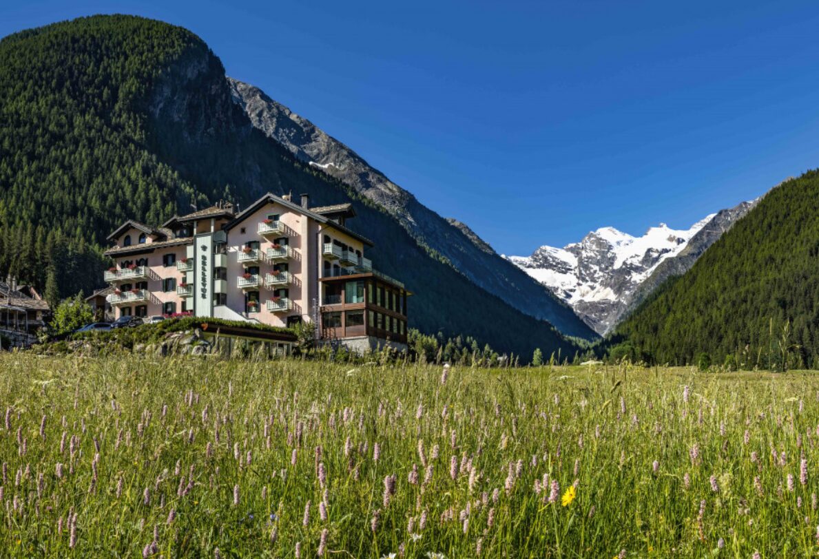 Bellevue Hotel e Spa is a stunning mountain lodge surrounded by meadows and a glacier-capped peak. Its quirky, cozy design evokes a fairytale feeling, all while offering 5-star service. Guests can enjoy the Alps-style sauna and spa with a wide range of treatments, a heated indoor swimming pool, a spacious terrace and indoor lounge spaces with panoramic views, stunning well-appointed rooms, an impressive wine cellar, and a cozy bar and restaurant serving hearty Alpine fare.