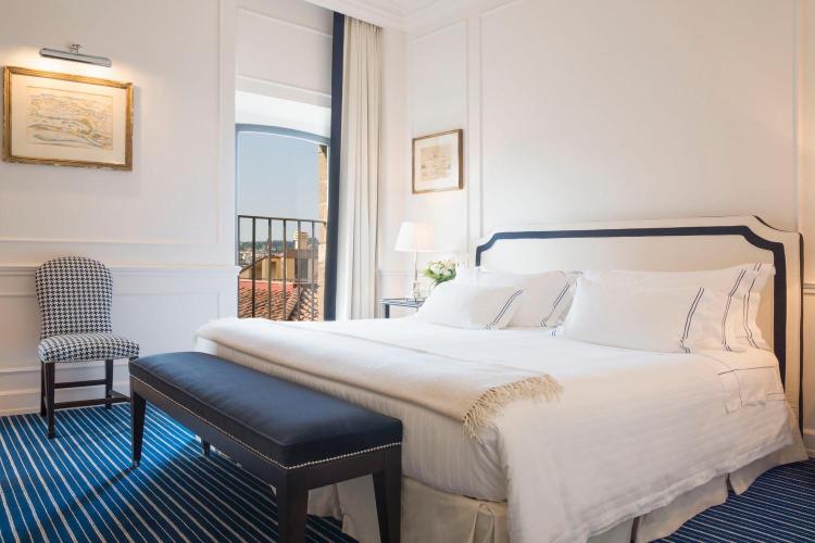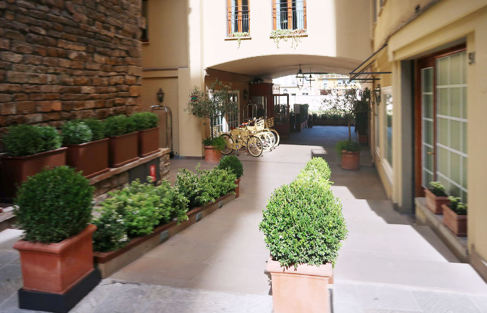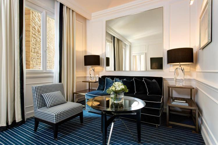 The Hotel Lungarno is steps away from the Arno river, boasting one of the best locations in Florence. This 65 room hotel underwent a major refurb in 2017. The rooms are stunning, all of them with antique furnishings and original paintings from the hotel’s collection. The hotel has a retro vibe to it that lends well to the interior design of neat, neo-classical and nautical elements (creamy sofas with blue piping, monochrome sailing prints in the reception) which gives the vague feel of a ship gently cruising down the Arno.