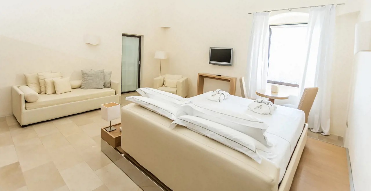 Nestled in the enchanting town of Ostuni, Italy, the Relais La Sommità hotel stands as a refined oasis of luxury and tranquility. Set atop a charming hill, this boutique retreat offers breathtaking views of the picturesque landscape of Puglia. Housed within a meticulously restored 16th-century palace, the hotel seamlessly blends historical elegance with modern sophistication. The hotel boasts a collection of lavishly appointed rooms and suites, each exuding a unique blend of traditional Italian charm and contemporary design. Guests are treated to an unforgettable experience, complete with plush amenities, lavish furnishings, and panoramic vistas of the surrounding countryside.