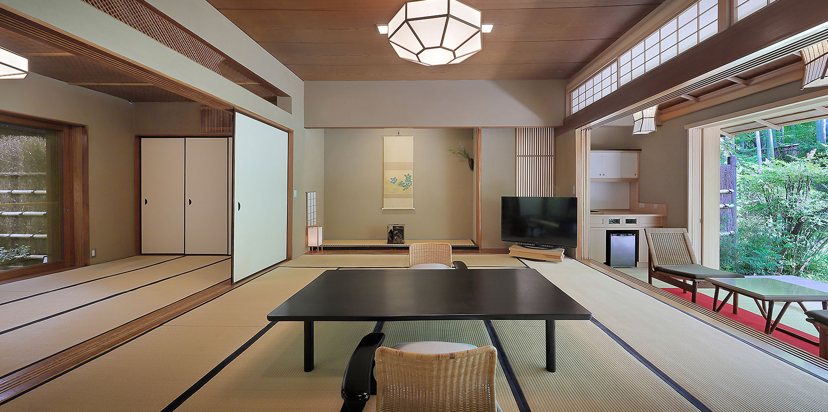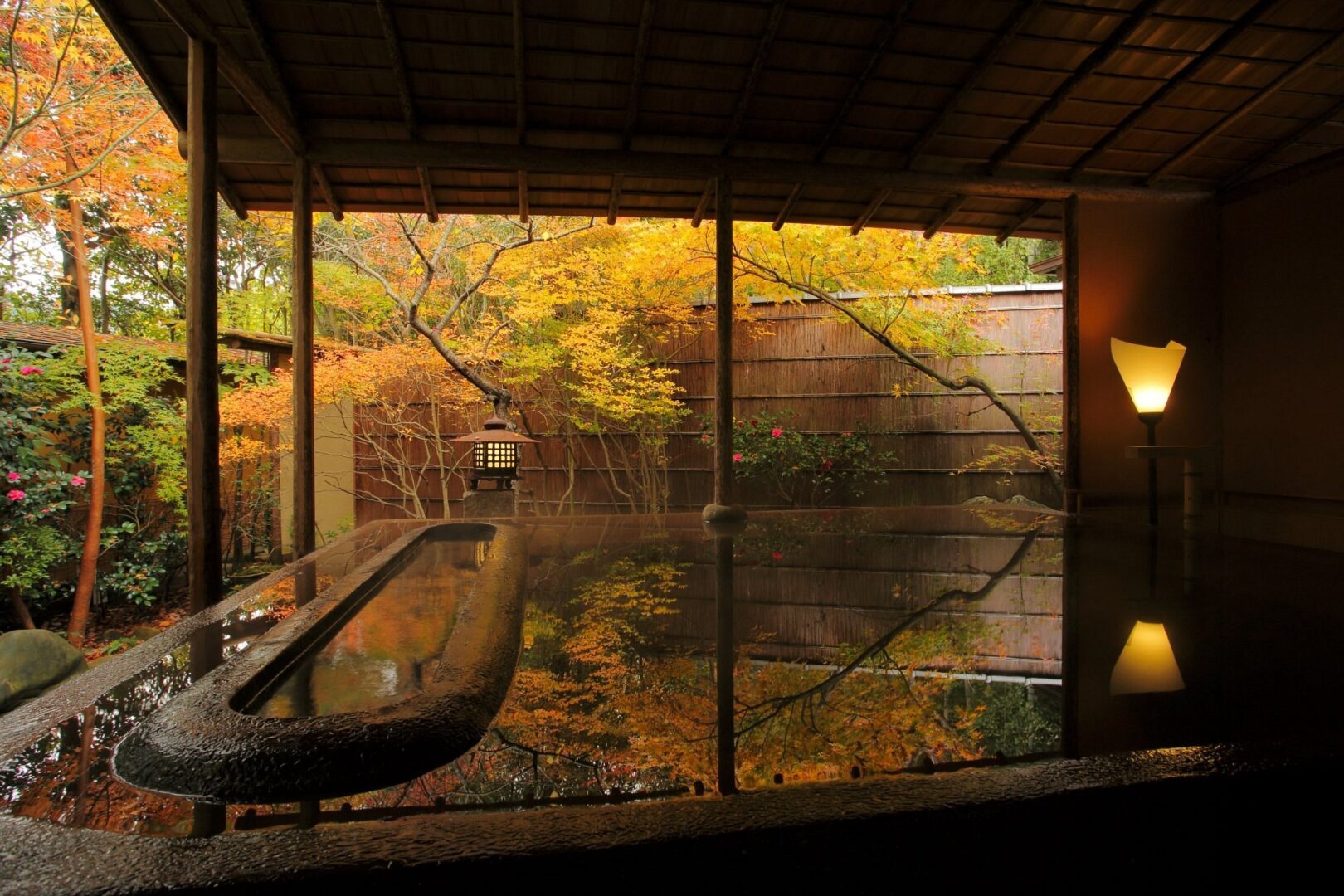 Tucked into the forested hills of the Izu Peninsula, Yagyu No Sho is a traditional ryokan known for its peaceful setting and refined hospitality. The property features just 17 guest rooms, each with tatami floors, sliding shoji screens, and private open-air baths fed by natural hot springs. Guests are served multi-course kaiseki meals highlighting seasonal ingredients, and the landscaped gardens create a tranquil backdrop for relaxation. The ryokan also offers indoor communal onsen baths and tea rooms that reflect classic Japanese design.