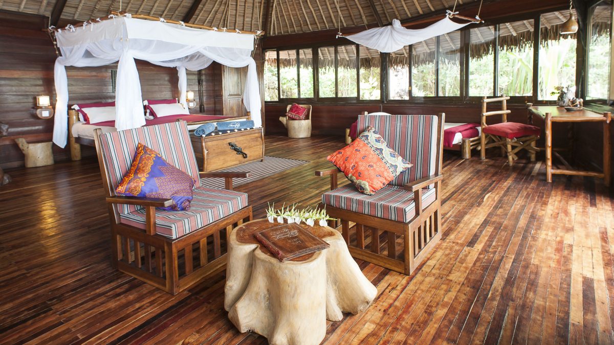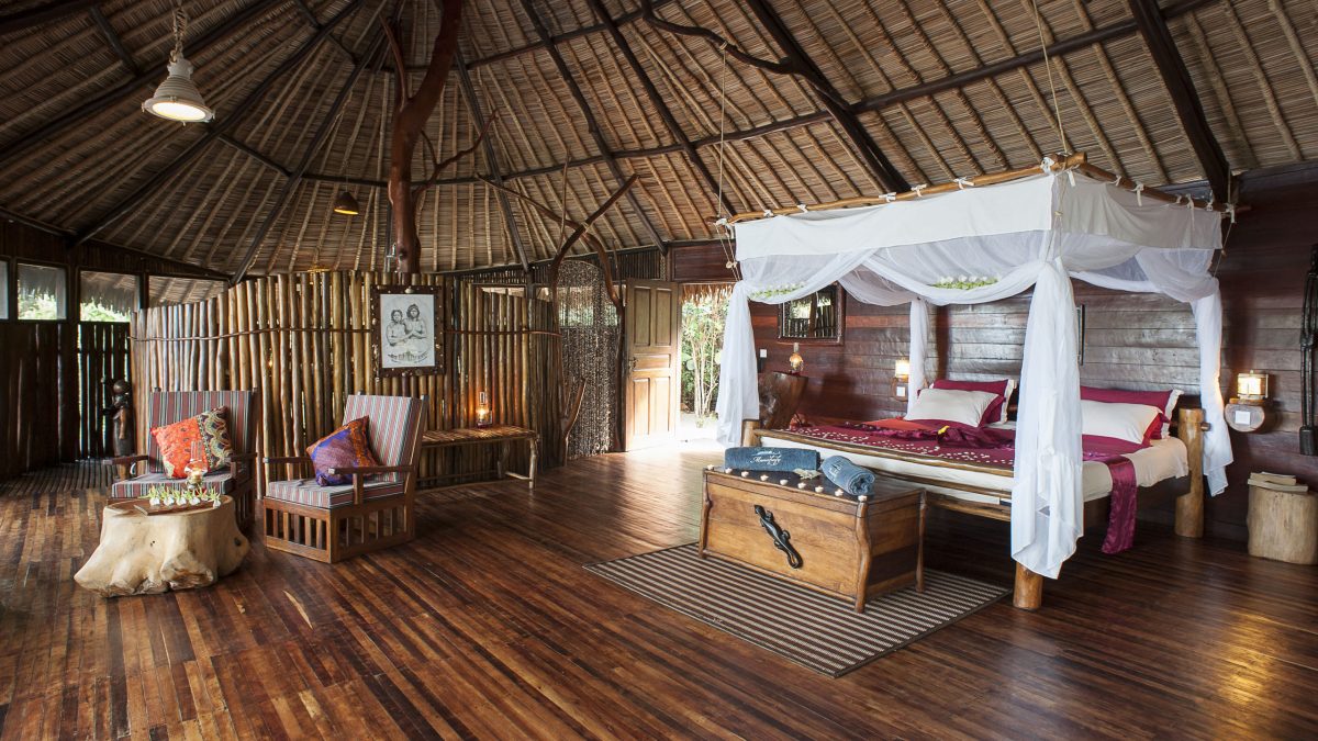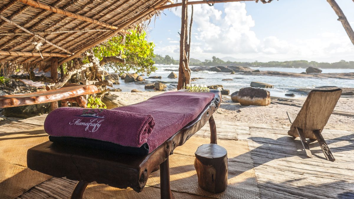 Manafiafy Beach and Rainforest Lodge sits nestled into a forest-fringed cove on a tranquil stretch of white sand beach rarely seen by anyone other than the local fishermen who have lived here for generations. Each of the five luxury thatched bungalows offers a private terrace just steps from the sea, where you can go for an early morning swim or watch the dugout canoes come and go in search of fresh fish and lobsters.