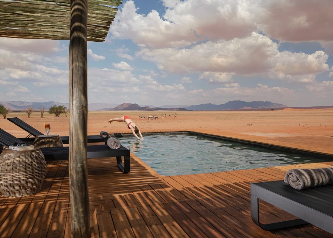 The Kwessi Dunes Lodge is located deep in Namibia’s striking NamibRand Nature Reserve, a vast desert wilderness of over 200,000 hectares.