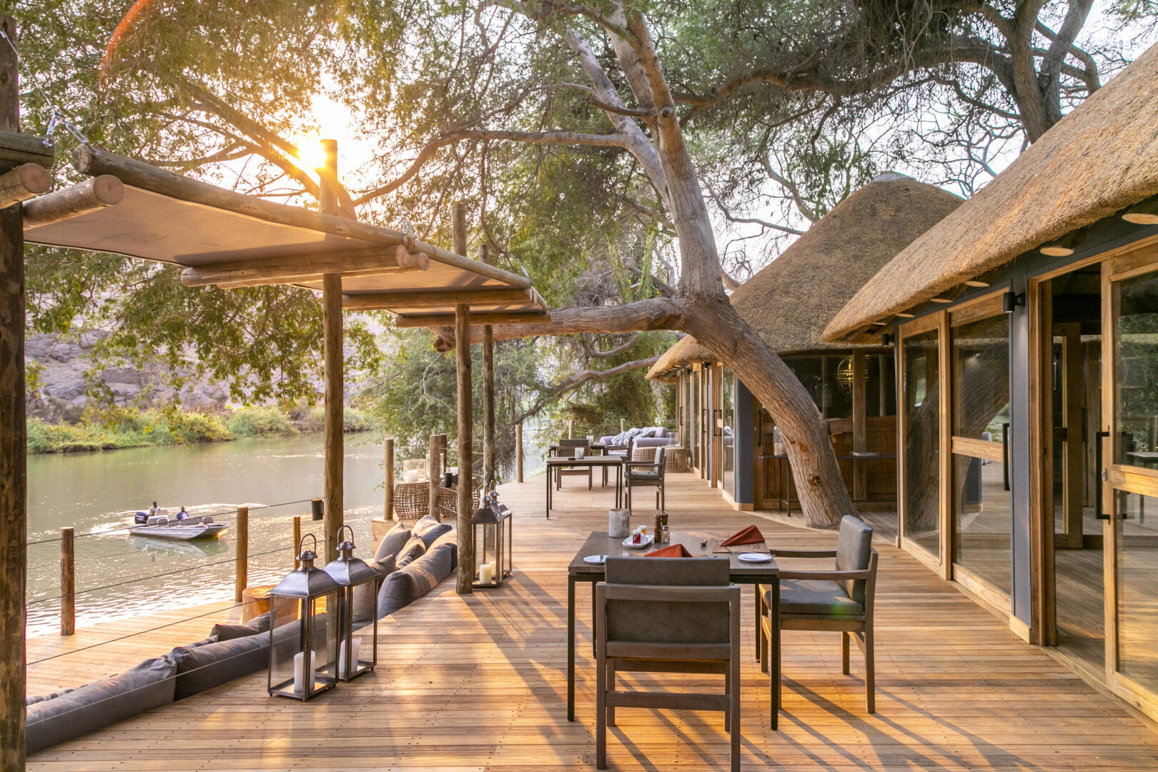 Set among shady trees on the banks of the Kunene River, Serra Cafema is one of the most remote camps in Southern Africa. Its Portuguese name originates from the mountains that dominate the northern skyline. Activities here are varied, including boating (seasonal), walking among breathtaking landscapes, and carefully guided quad-bike excursions that tread lightly on the dunes. In this isolated region, the Himba people continue their nomadic, traditional way of life and when in the area, offer guests the opportunity to learn about their lifestyle and traditions.