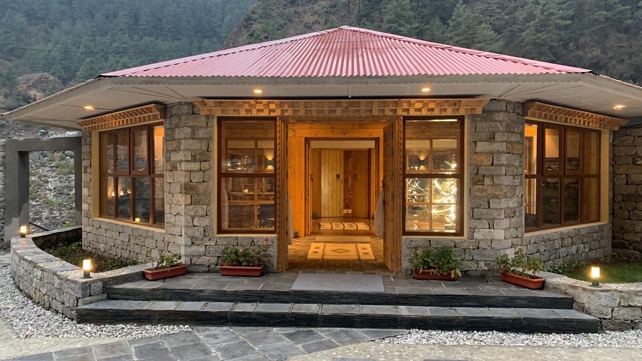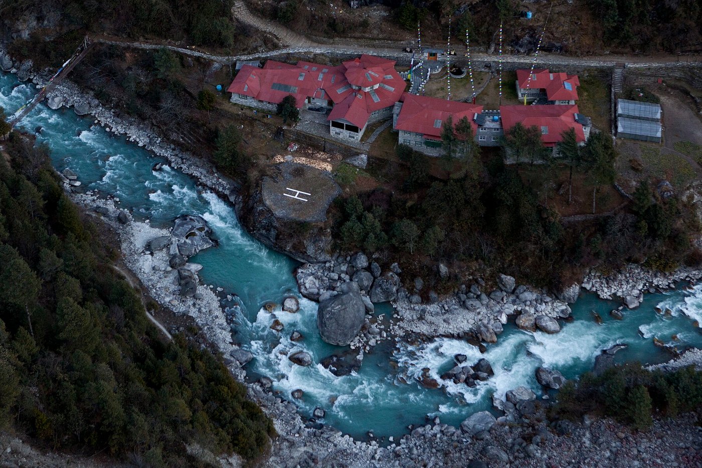 Approximately four hours hike from Lukla. Phakding Lodge is set in an idyllic part of the Dudh Koshi river gorge, just before a small bazaar. To get a sense of how this Mountain Lodge has spent over a decade working on sustainable farming practices, stroll over to the vegetable garden and see what seasonal produce you might be served at dinner. Rooms are finished in a combination of traditional Khumbu and modern style with lashings of natural wood. En-suite bathrooms, heated beds, and soft, clean sheets ensure your comfort, along with the spectacular view of the mountains. At the restaurant, enjoy a fully stocked bar and an à la carte menu.