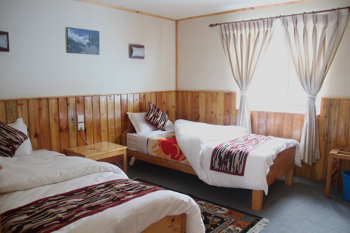 Panorama Lodge is a quaint family-owned lodge perched on top of Namche Bazaar, and was established in 1989. The lodge boasts a cozy central fireplace, WiFi, hot showers, and hearty Nepali and Western meals served at the onsite restaurant. The rooms are basic but comfortable, outfitted with large windows and toasty heated blankets.