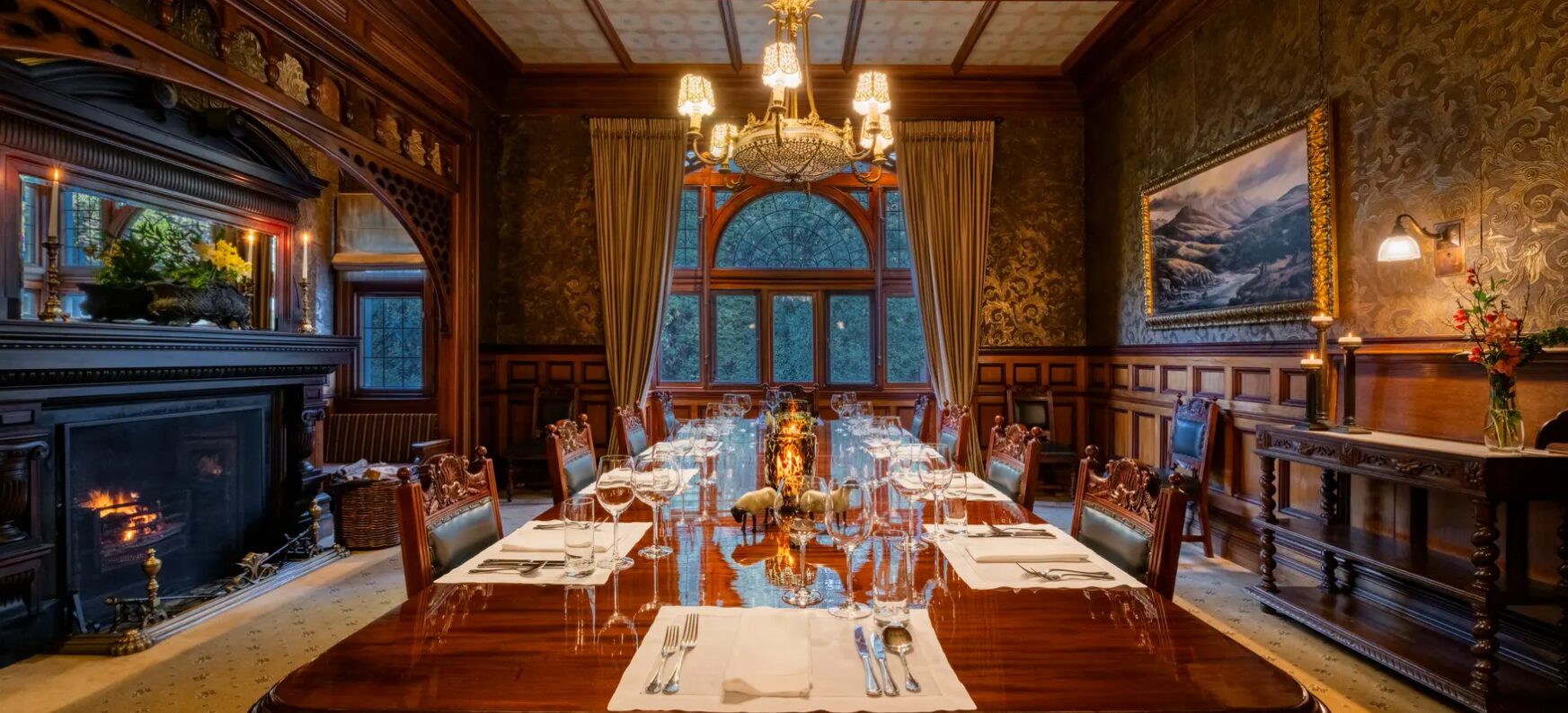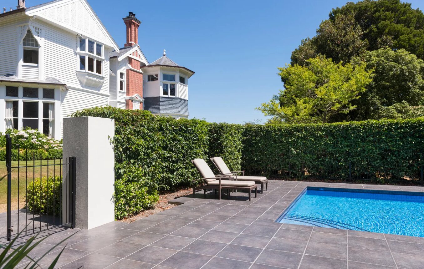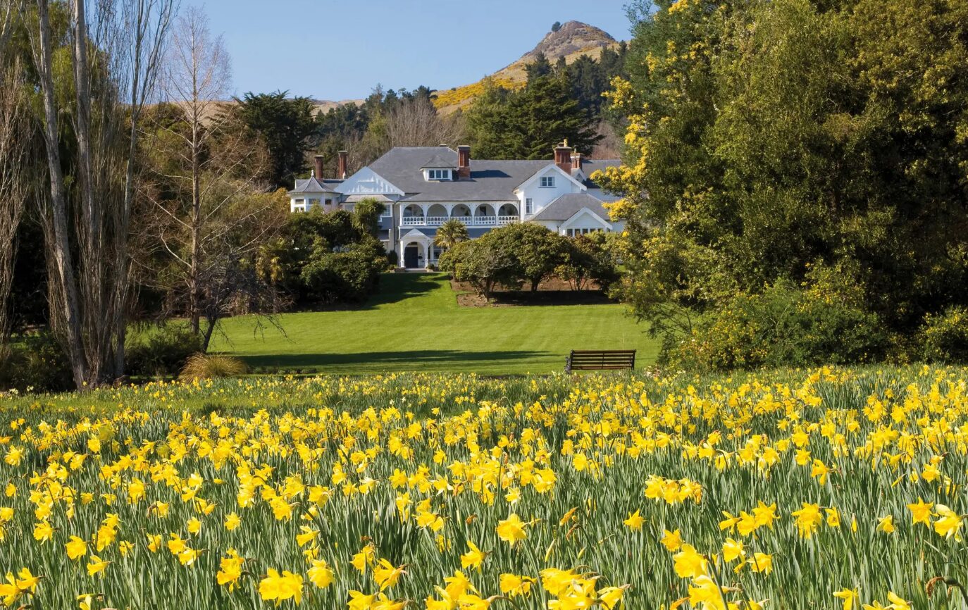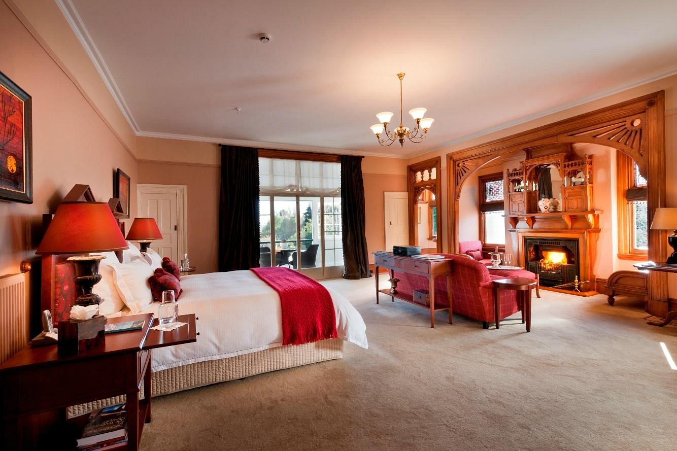 Otahuna Lodge is a grand Victorian mansion set on 30 acres of landscaped gardens just outside Christchurch, offering one of New Zealand’s most historic and luxurious lodge experiences. Built in 1895, the property features seven individually decorated suites with ornate fireplaces, stained-glass windows, and elegant furnishings that highlight its heritage character. Dining is a highlight, with multi-course menus showcasing produce grown in the lodge’s expansive kitchen gardens and orchards, paired with fine New Zealand wines. Guests can wander the manicured grounds, take part in cooking classes, or relax in the outdoor pool and hot tub. The lodge’s combination of historic architecture, refined hospitality, and tranquil setting makes it a destination in its own right.