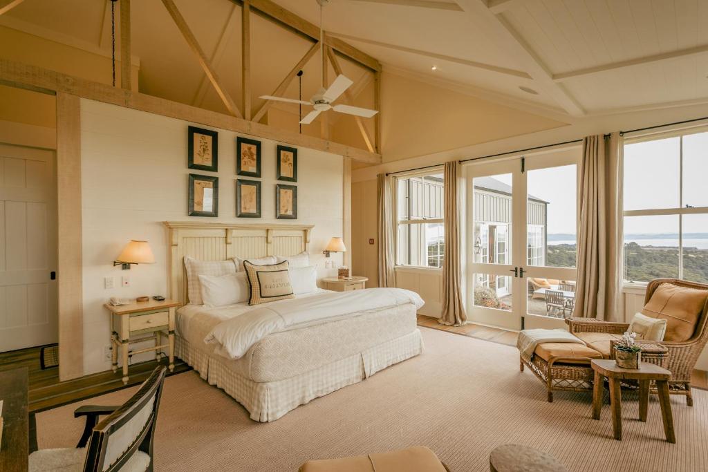 Rosewood Cape Kidnappers is a luxury lodge set on a 6,000-acre working farm and coastal sanctuary in Hawke’s Bay, perched high above the Pacific Ocean. The property features elegant suites and villas with open fireplaces, walk-in wardrobes, and panoramic views over rolling hills or dramatic cliffs. Guests can enjoy farm-to-table dining, a spa, infinity pool, and access to the award-winning Cape Kidnappers Golf Course.