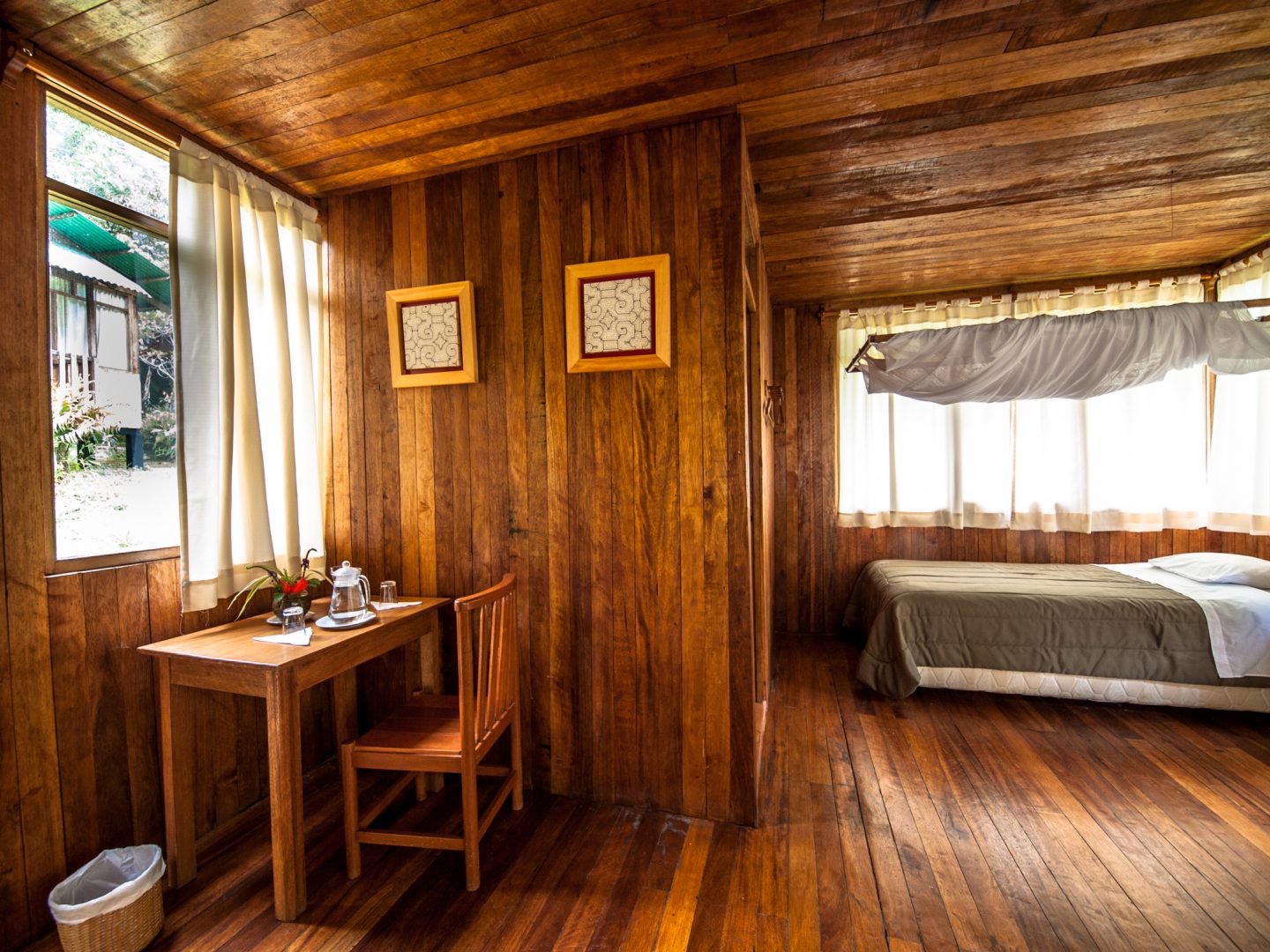 The Cock of the Rock Lodge sits on a 12,500 foot cloud forest reserve in Manu, Peru. Named after the Andean bright red Cock of the Rock Bird, this 10-bungalow hideaway provides a perfect refuge for wildlife lovers. A mountain stream flows past the lodge.