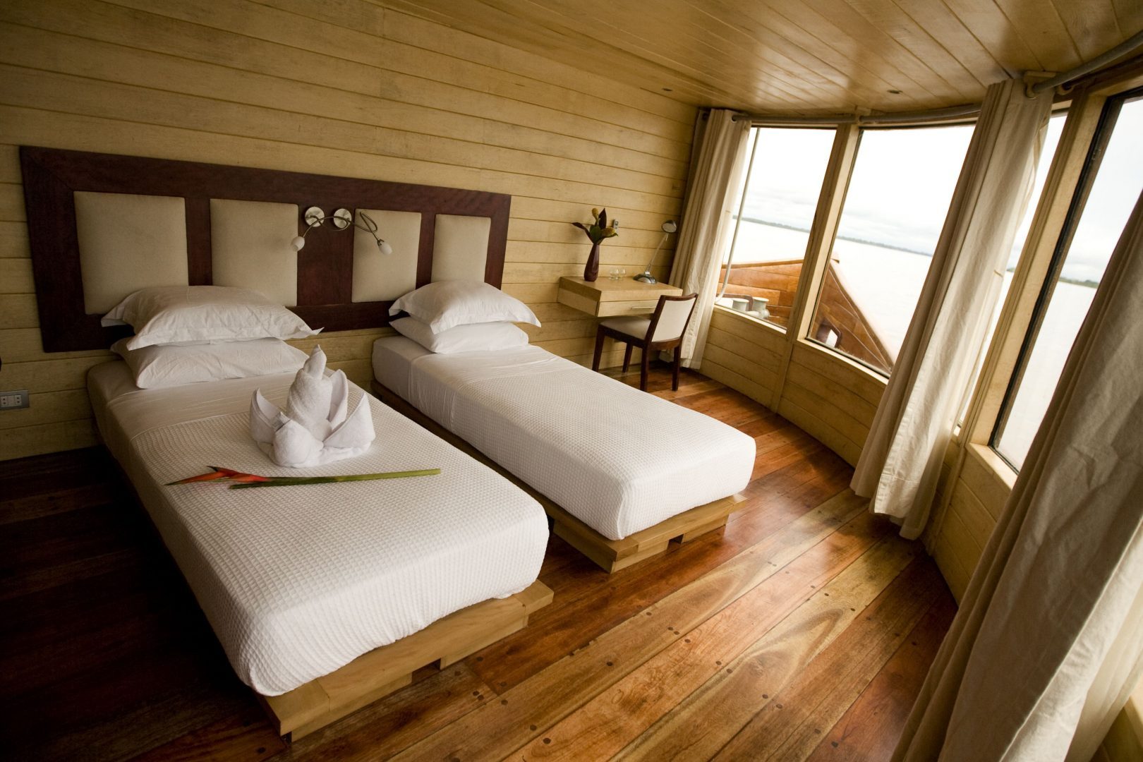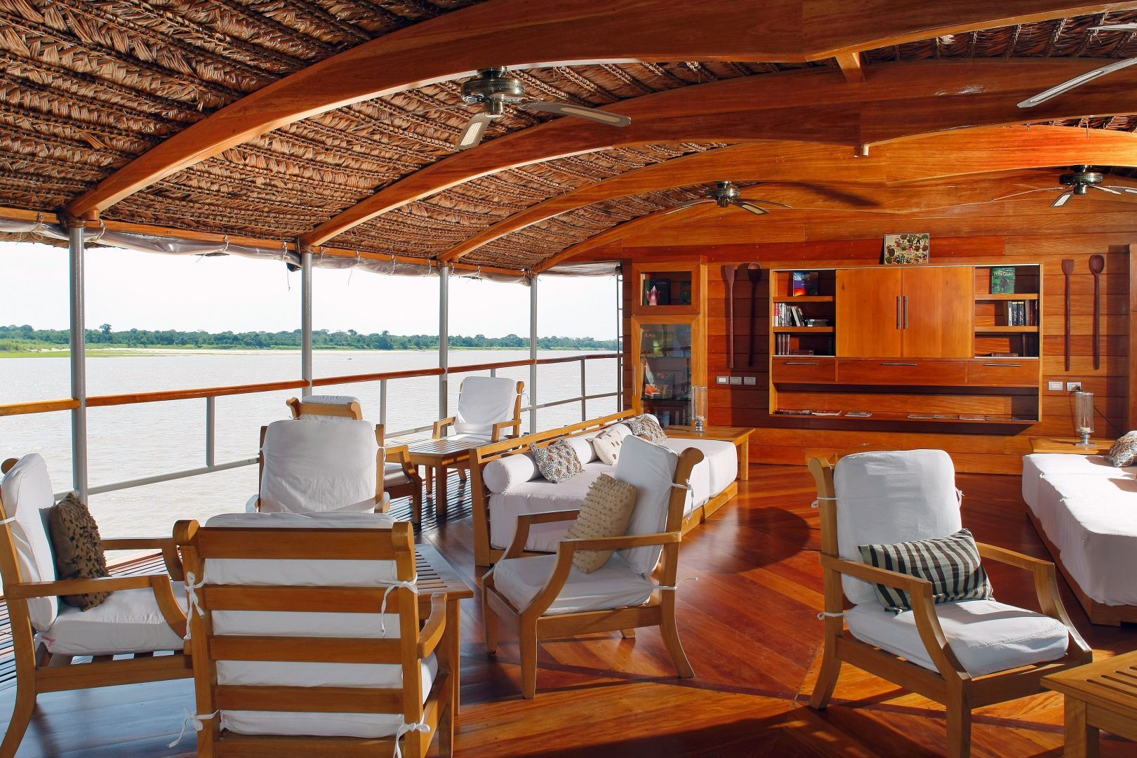 The Delfin II, a Relais & Chateaux vessel, offers upscale Amazon River cruises as part of the Delfin Amazon Cruises fleet. The 120-foot ship has fourteen guest suites with a maximum capacity of 28 passengers. Like its sister ships the Delfin I and Delfin III, it offers an open observation deck, lounge and guest library, a bar, and a dining area featuring gourmet Peruvian cuisine. The Delfin II also offers a hammock sun deck where guests can relax and take in the beautiful scenery.