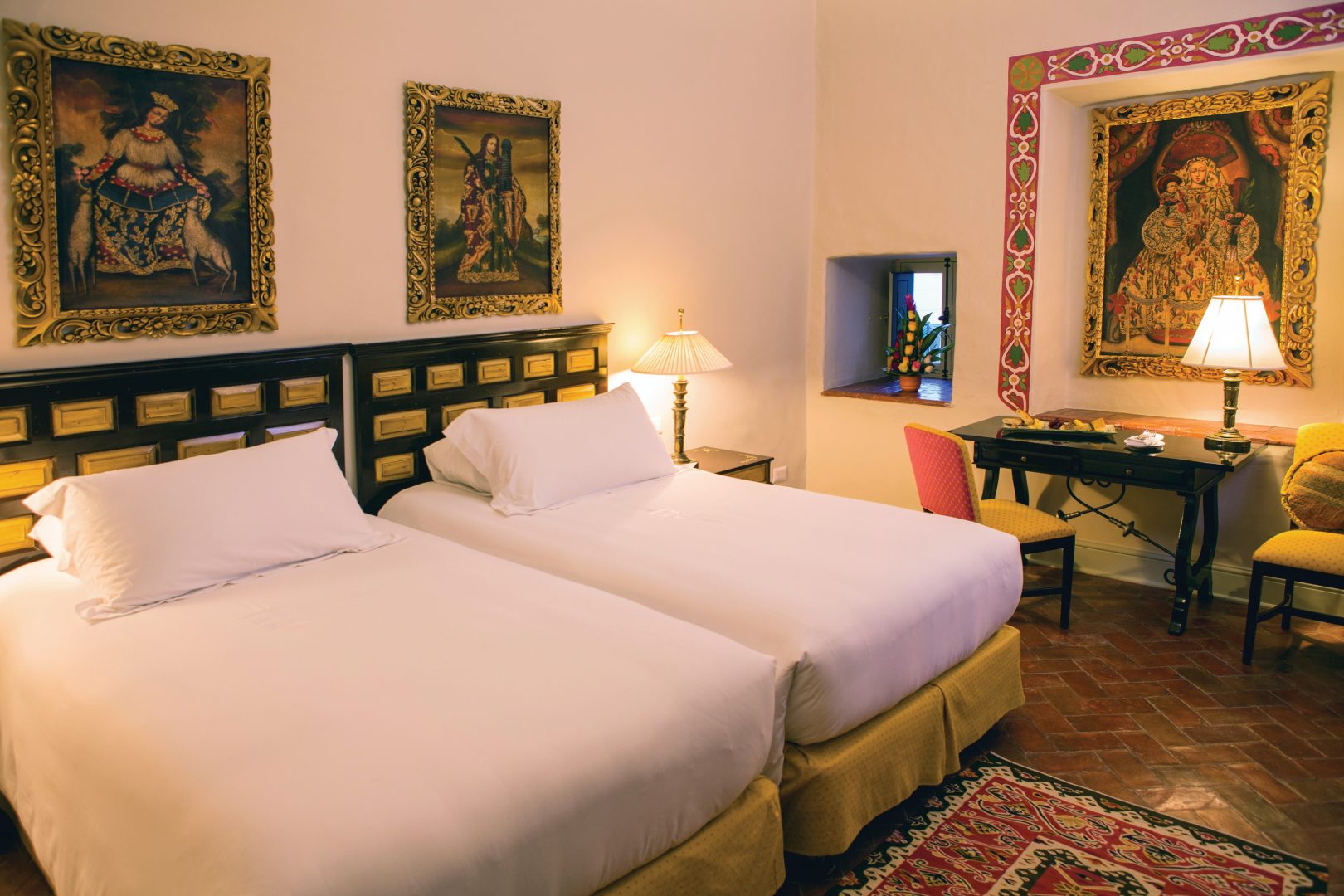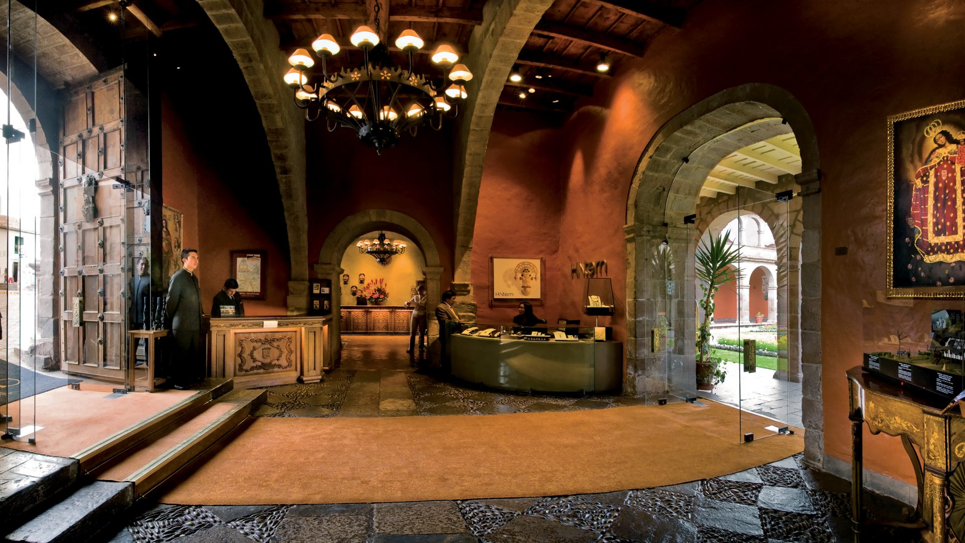 Built on Incan foundations and located two blocks from the Plaza de Armas, the Hotel Monasterio is a beautiful and stately place. One of the top hotels in South America, the building originally served as a colonial monastery. The structure itself is a work of art, including a remarkable chapel adorned with extraordinary gold ornaments. Each room has its own collection of antiques and artwork. Service is superb and the restaurants are some of the top in the city.