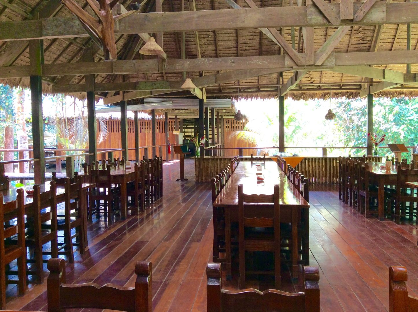 Posada Amazonas is a jungle lodge that sits within the private territory of the Infierno Community, almost 5,000 acres of protected land. This property is a pioneering eco-tourism project that has received support from Conservation International, and the lodge is managed in a low-impact manner in cooperation with the local community to create a model of sustainable tourism. Its architecture features an eclectic blend of traditional native materials and modern eco-lodge technology. All rooms have private baths; decor is fairly utilitarian and the emphasis is on experiencing the rainforest, not on creature comforts. The 30 rooms are decorated with bas-relief wood carvings representing stories and characters from the Ese-eja tradition. While staying at this lodge you'll have the chance to view a wide variety of bird and animal life, including macaws, parrots, giant river otters, caiman, and several species of primate. This traditional lodge is one of the top in the Peruvian Amazon