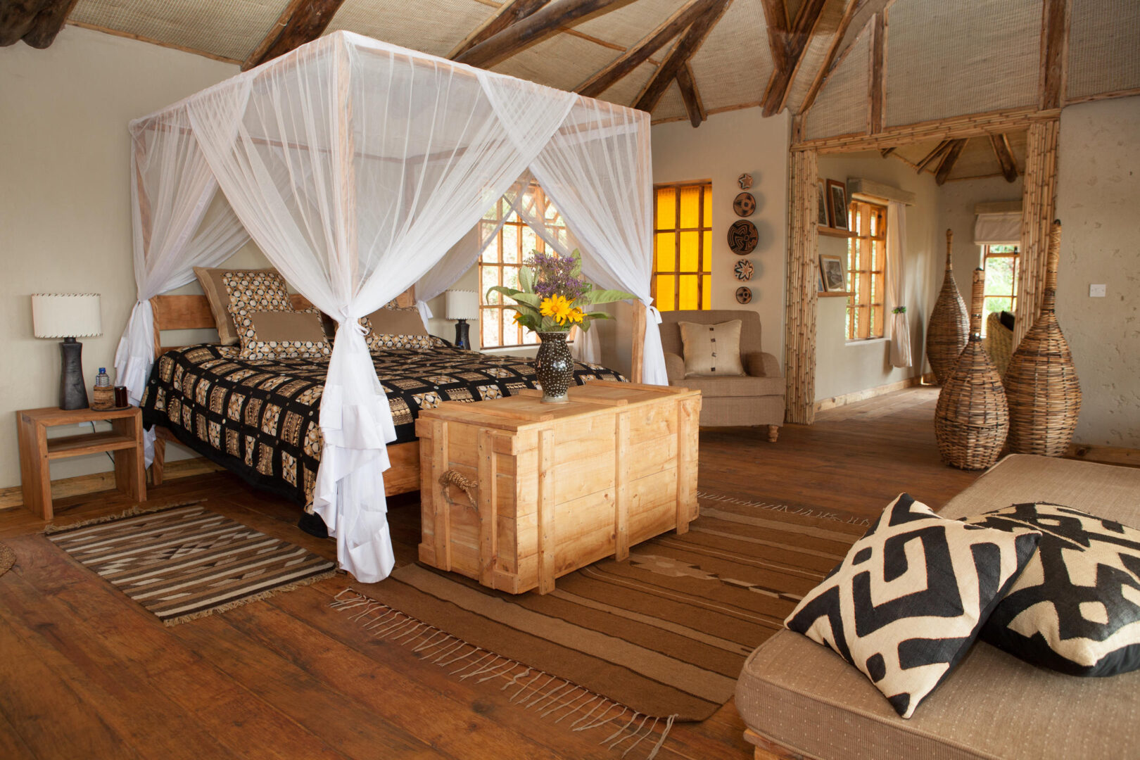 The magnificent Virunga Lodge is one of the premier luxury gorilla lodges in Rwanda. Perched high on a ridge with stunning views of the Virunga Volcanoes, the Musanze valley to the west and Lake Bulera and Ruhondo to the east, this lodge is ideal for any gorilla trek. Uniquely decorated rooms in the Rwandese style, fantastic food and exceptional and personalised service are all on offer here.