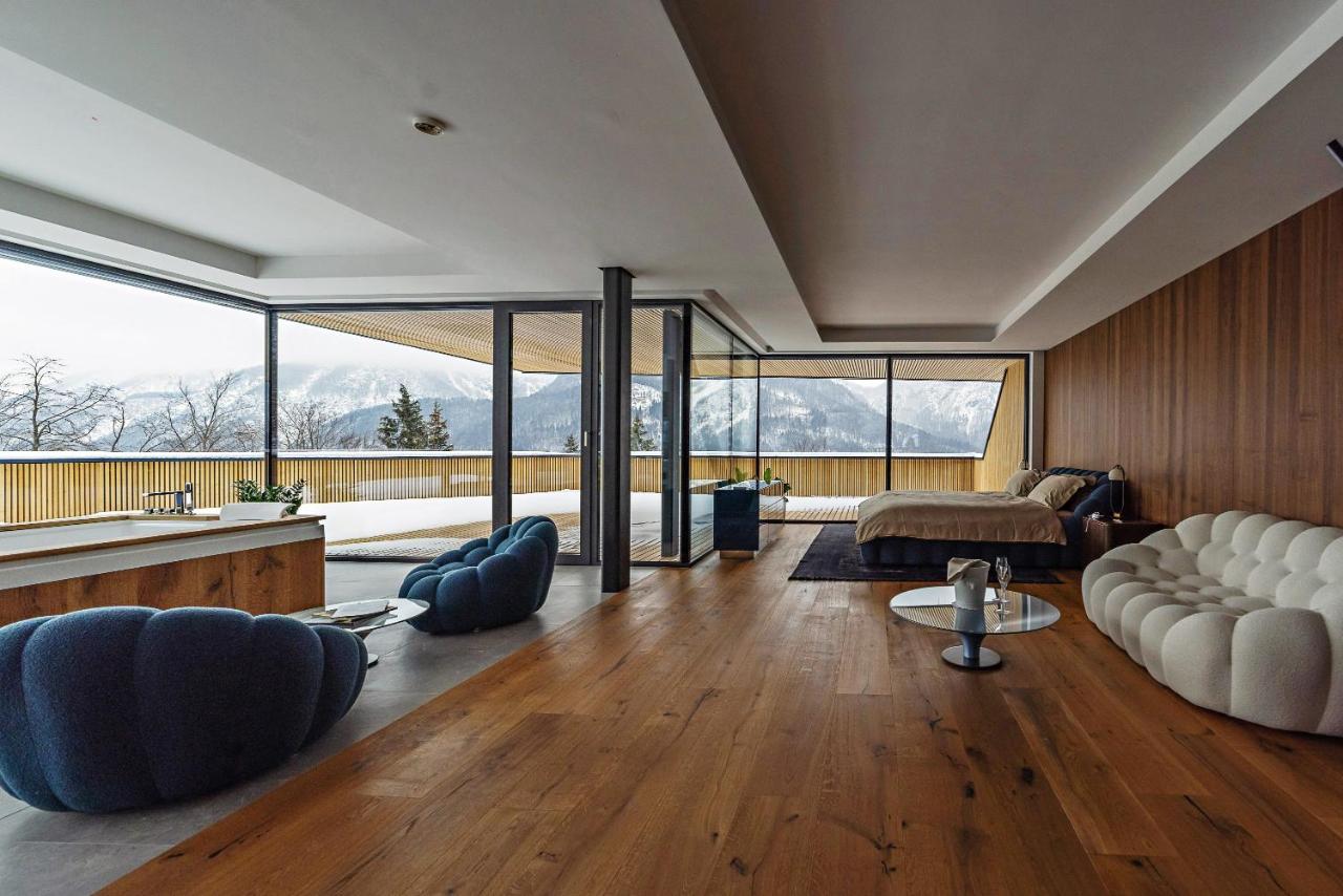 Chalet Sofija is a luxury mountain lodge located in the heart of Slovenia's Julian Alps. Featuring exceptional panoramic mountain views, this modern lodge offers a heated outdoor swimming pool, chic indoor and outdoor lounge spaces, a sauna, a restaurant serving gourmet elevated Western European cuisine, and a cocktail bar.