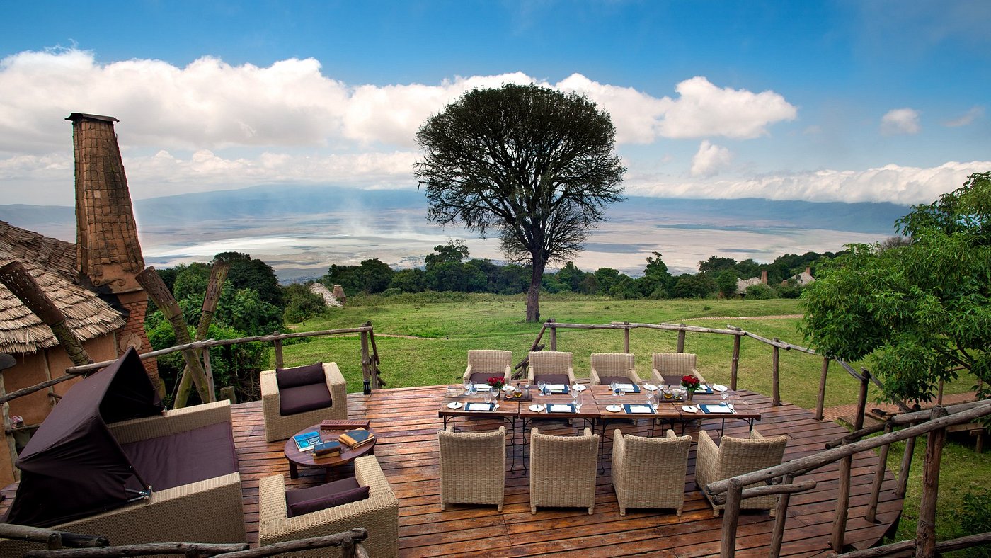 Divided into three camps, 30 suites with banana leaf ceilings and grass roofs provide an intimate and exclusive experience. Each camp has its own sitting and dining areas, with private butlers who provide warm, personal service. With ever-changing views as mists swirl over the huge wildlife cauldron below, the location is truly breathtaking. Everything is chosen to delight the imagination and enhance the spectacular views of the magnificent surroundings. Steeped in romance, each stilted, handcrafted banana thatch suite at andBeyond Ngorongoro Crater Lodge is adorned with graceful antiques and unforgettable opulence. En-suite bathrooms, with a centrepiece of fresh roses, feature huge showers and chandelier-lit bathtubs, while floor-to-ceiling windows ensure breathtaking views from all around.
