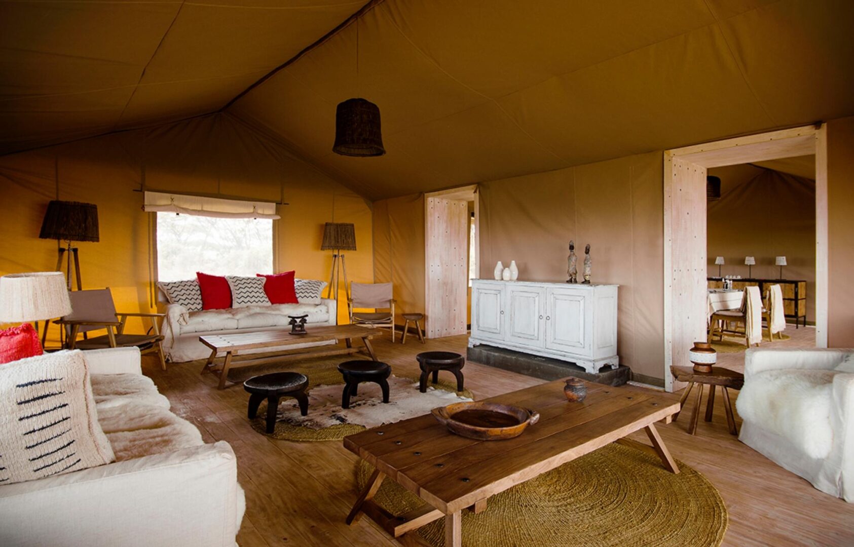 Seven large en-suite tents, two of which are family units, look out across the iconic crater view, with a backdrop of ancient acacia trees. The style here is as unique as the location – everything carefully handcrafted locally. There’s nothing tame about this location – the high altitude sun has some real heat, and the wind can be biting and sometimes noisy. Entamanu offers a camp that makes the most of the extraordinary view while providing warmth and shelter from the elements, while being entirely removable. Every design detail has been considered in light of this, while still providing comfort in this elemental place. Facilities include a restaurant and bar.