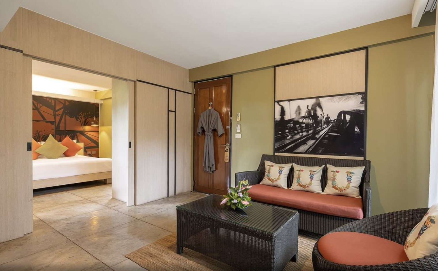 U Inchantree is a charming boutique hotel located on the north bank of the Kwai Yai River, close to the famous River Kwai Bridge. The hotel features 50 hotel rooms in two-story buildings set around a courtyard, dominated by an ancient “Inchantree” from which the resort derives its name. The overall design of the resort is a rustic river lodge style surrounded by landscaped gardens. Enjoy freshly prepared cuisine with spectacular views of the River Kwai at the Thai Peppers restaurant or sundowners at the sunset terrace lounge.