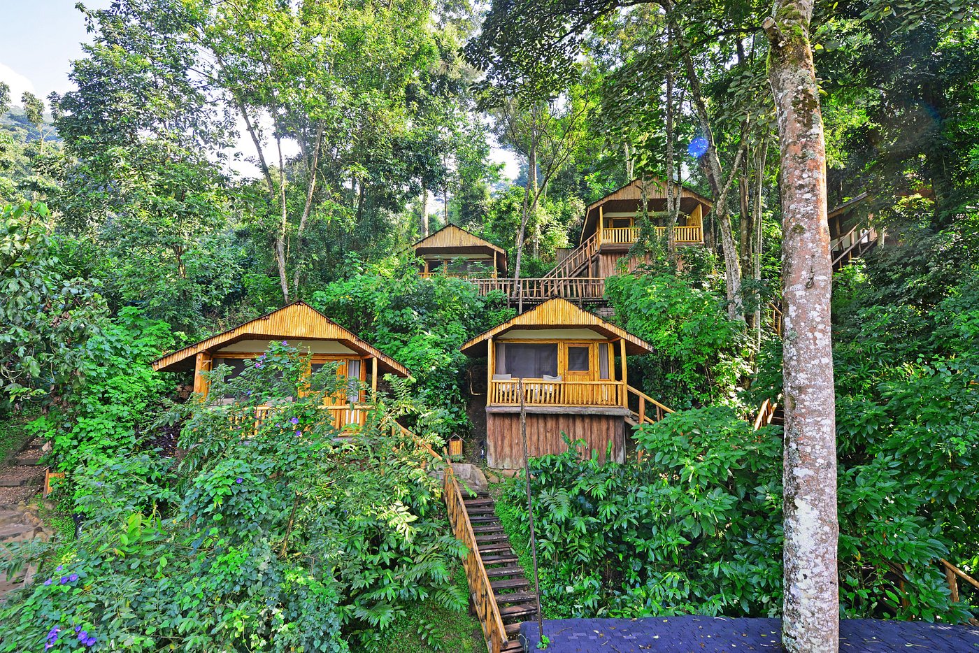 Buhoma Lodge is an intimate and charming lodge that commands spectacular and uninterrupted views of the Bwindi Impenetrable Forest National Park, home to the rare and elusive Mountain Gorilla. Buhoma Lodge is one of only two lodges situated within the National Park, and is within a short walking distance from the meeting point for gorilla tracking and other activities. The lodge features an elevated central area, complete with a lounge, bar, and dining area, complete with a fireplace to add atmosphere and warmth in the cool evenings. The rooms are airy, bright, and have verandahs with views into the surrounding forest.