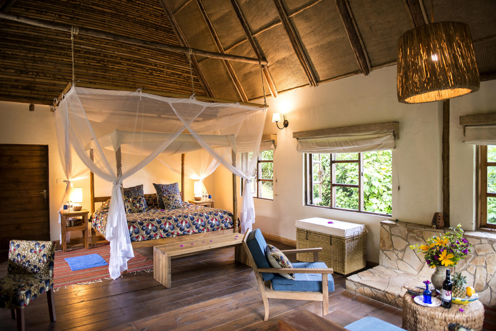 Featuring a sumptuous guest lounge and dining area that bring the feel of the forest into the stylish interiors, the main living area has a central fireplace which acts as a focal point for guests to relax and discuss their gorilla tracking experience. A beautifully designed outdoor terrace gives sweeping views of the impenetrable forest and is a great place to spot the monkeys and birds hidden in the foliage.