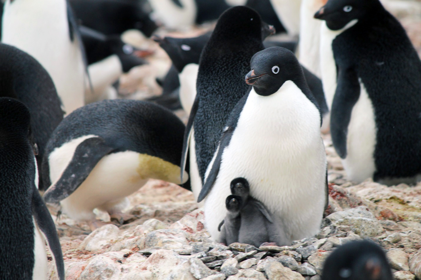 Adelie penguins with chicks