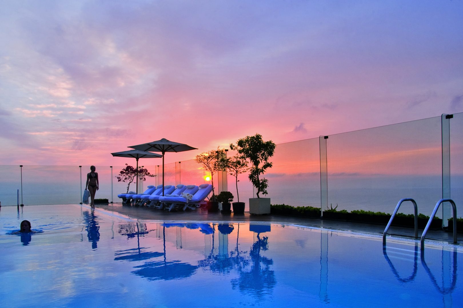 Miraflores Park Hotel lounge, outdoor seating overlooking the water