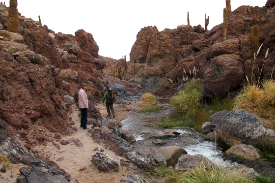 On a recent visit to Tierra Atacama, I had the chance to do this hike with my wife and dad. We weren’t expecting a whole lot out of it, just a morning activity that would allow us to get out and get some exercise. We were more than pleasantly surprised with this trek, the start of which is only about a 20 minute drive from the town of San Pedro and the area where most hotels are located. The excursion involves hiking downstream in the Guatin Canyon, navigating over rocks and boulders at times, and across the stream that lies in the middle.